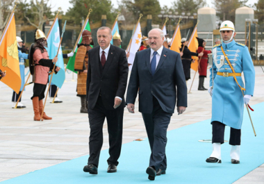 President Recep Tayyip Erdoğan welcomed President Alexander Lukashenko of Belarus with an official ceremony at the Presidential Complex. After the Turkish and Belarusian national anthems were played, President Lukashenko of Belarus inspected the guard of honor. Following the mutual introduction of the delegations, the two leaders posed for the press and headed inside the Presidential Complex for their talks. https://www.tccb.gov.tr/en/news/542/103979/president-lukashenko-of-belarus-at-the-presidential-complex