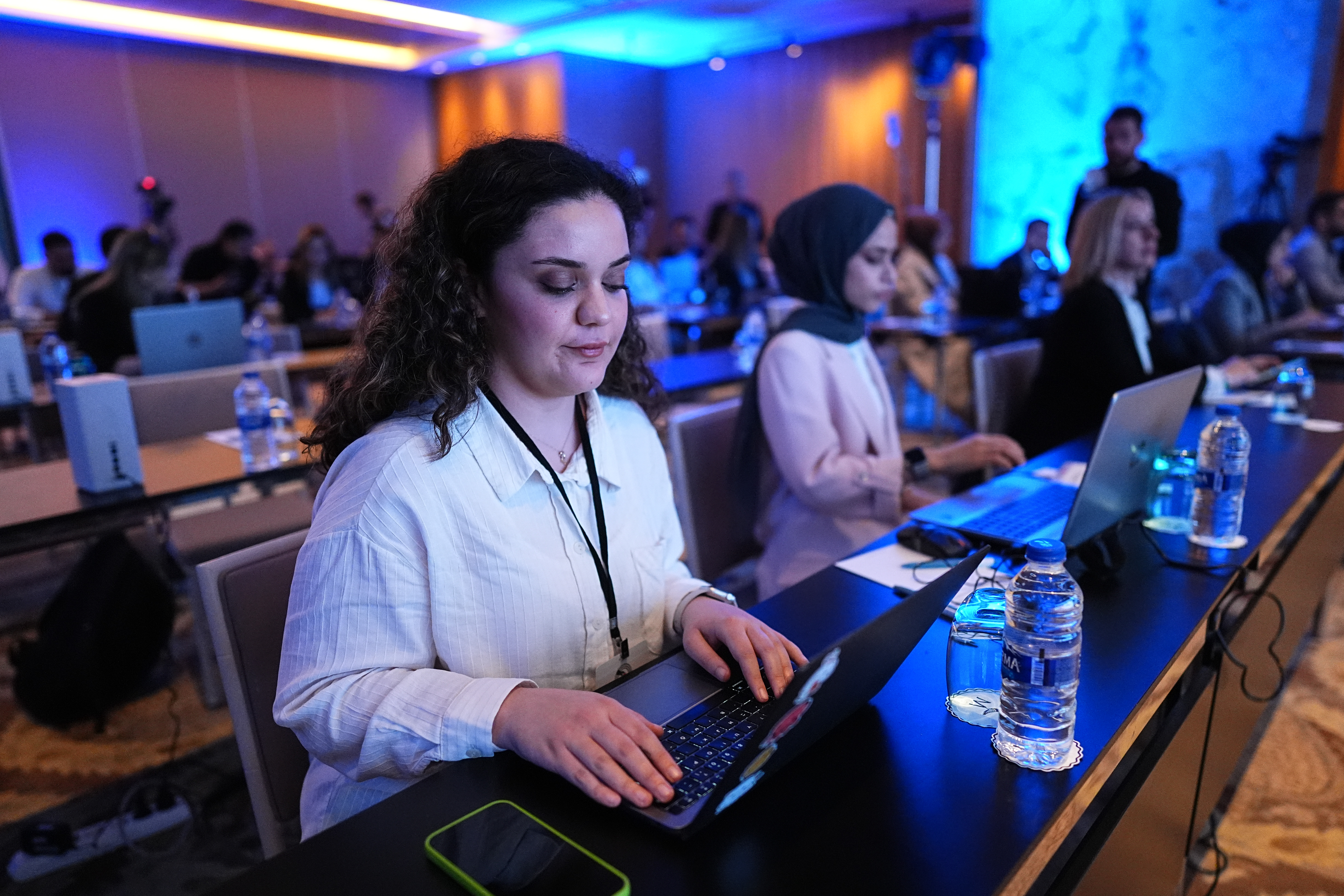 Basın mensuplarının yayın yapması amacıyla platformlar oluşturulan merkezde, yazılı haber yazmak isteyen gazeteciler için de masalar hazırlandı.