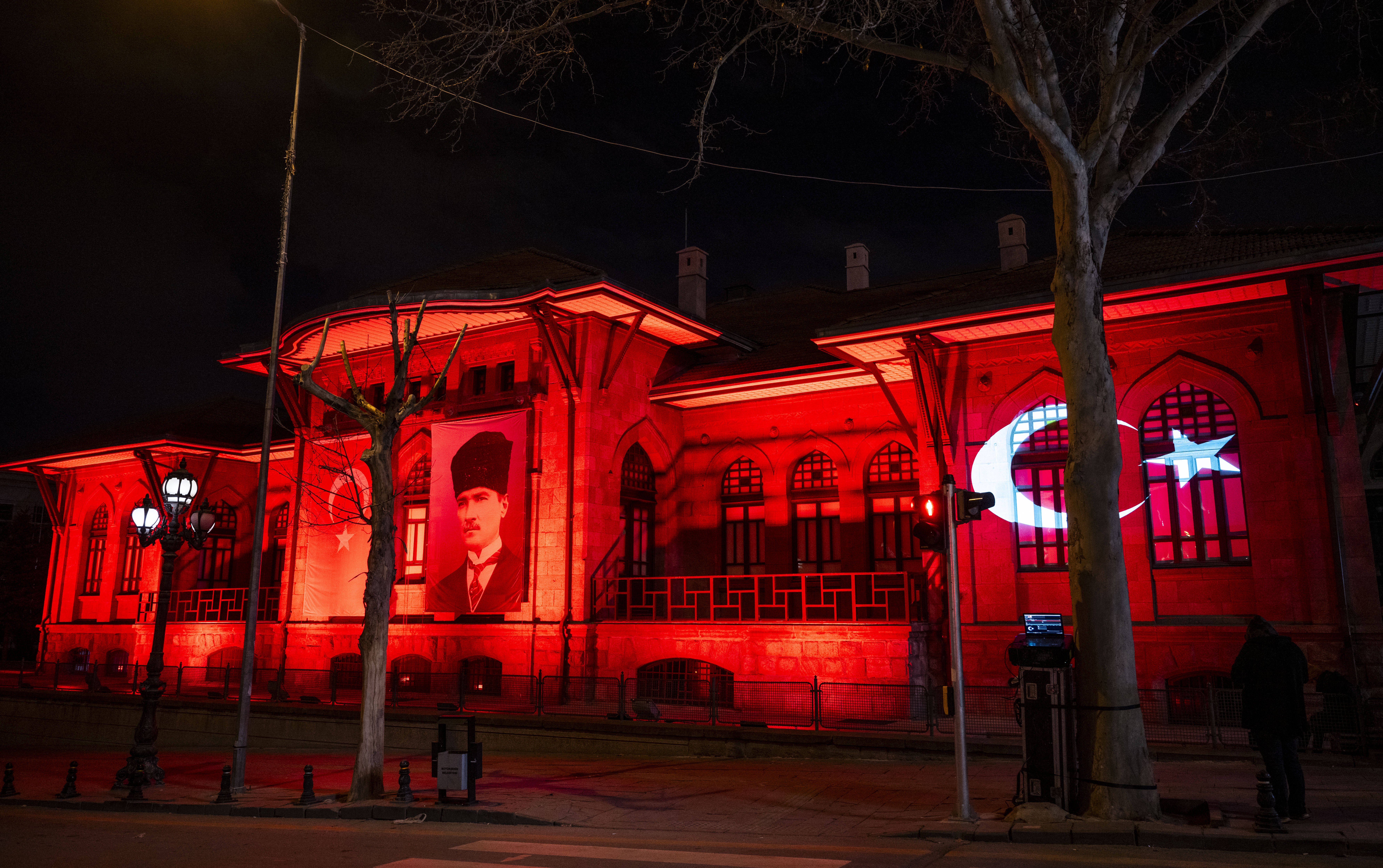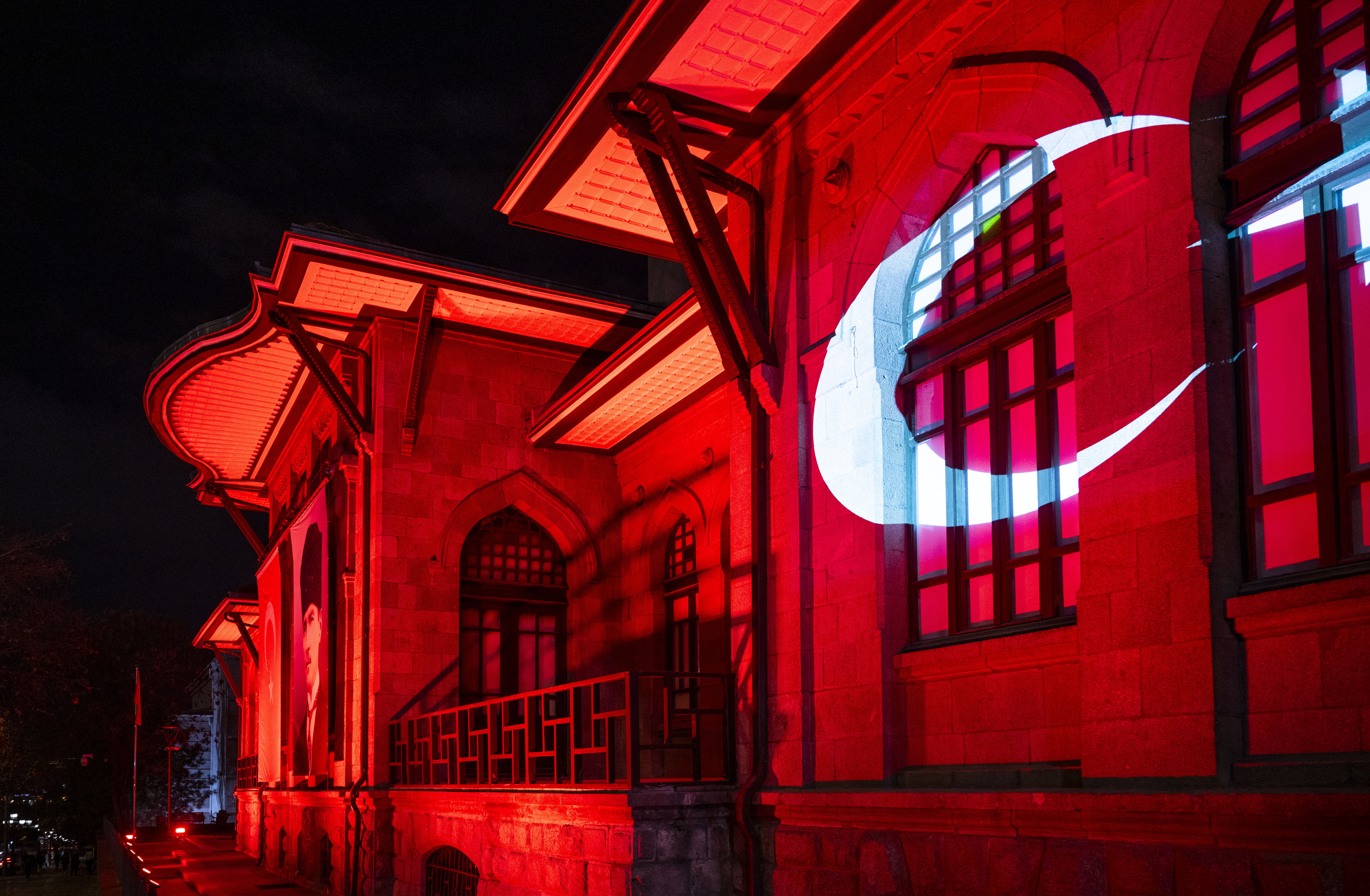 Bu kapsamda Birinci Meclis Binası kırmızı beyaz Türk bayrağı renkleri ile ışıklandırıldı.