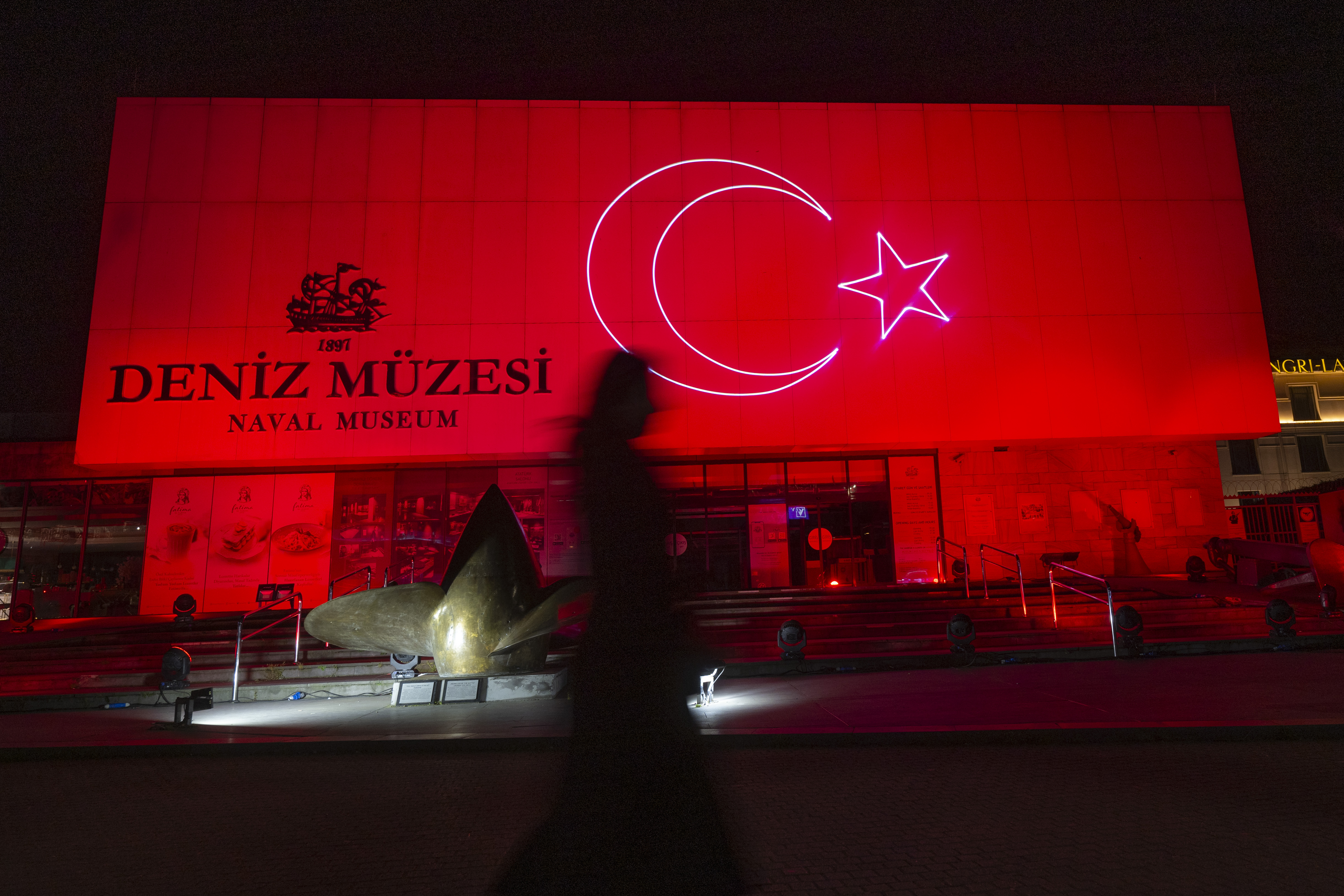 Kırmızı renkte ışıklandırılan Abide, Türk bayrağıyla bütünleşti.