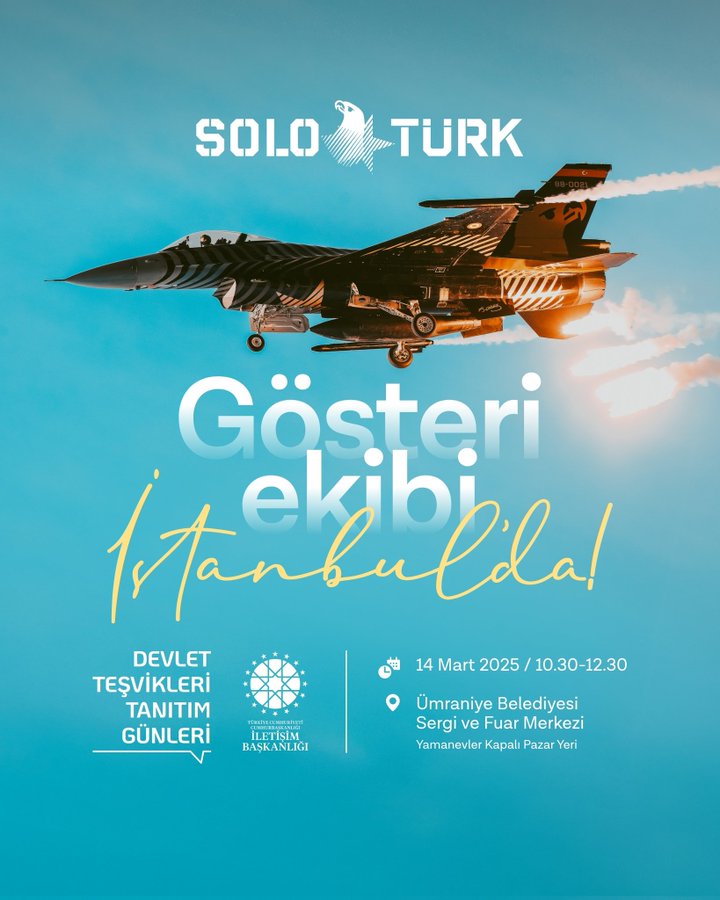 Göklerdeki gururumuz SOLOTÜRK de Devlet Teşvikleri Tanıtım Günleri kapsamında 14 Mart'ta Ümraniye Belediyesi Sergi ve Fuar Merkezi’nde gençlerle olacak.