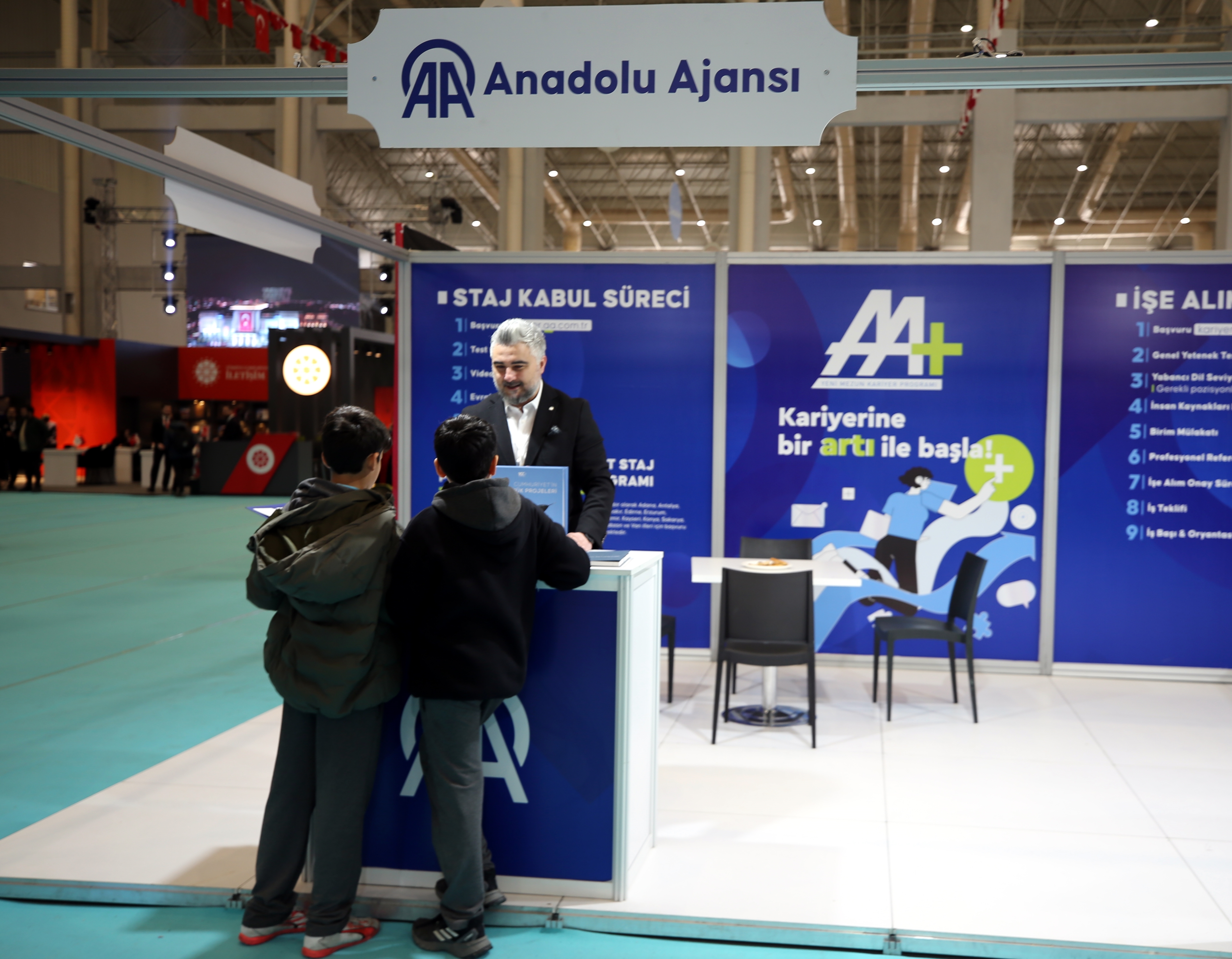 Stantlarda kurumların burs, hibe, fon, kredi destekleri ve staj programlarıyla ilgili bilgi alan katılımcılar, çeşitli simülasyon ve etkinlik alanlarında söz konusu birimlerin uygulamalarına eşlik etti.