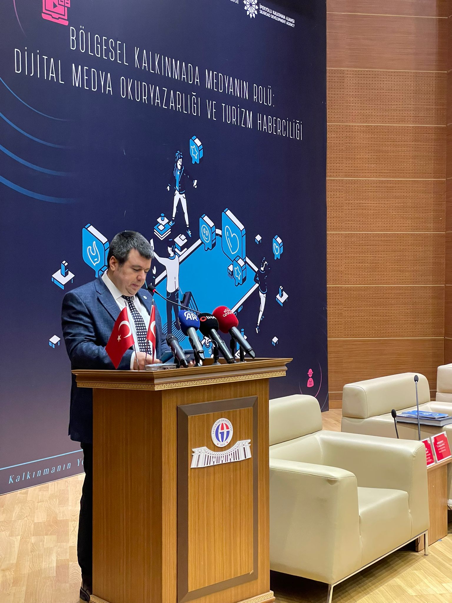 Cumhurbaşkanlığı İletişim Başkanlığı Gaziantep Bölge Müdürlüğümüz ve İpekyolu Kalkınma Ajansı iş birliğiyle, “Bölgesel Kalkınmada Medyanın Rolü, Dijital Medya Okuryazarlığı ve Turizm Haberciliği Paneli” Gaziantep Üniversitesi İlahiyat Fakültesi Konferans Salonu'nda gerçekleştirildi.