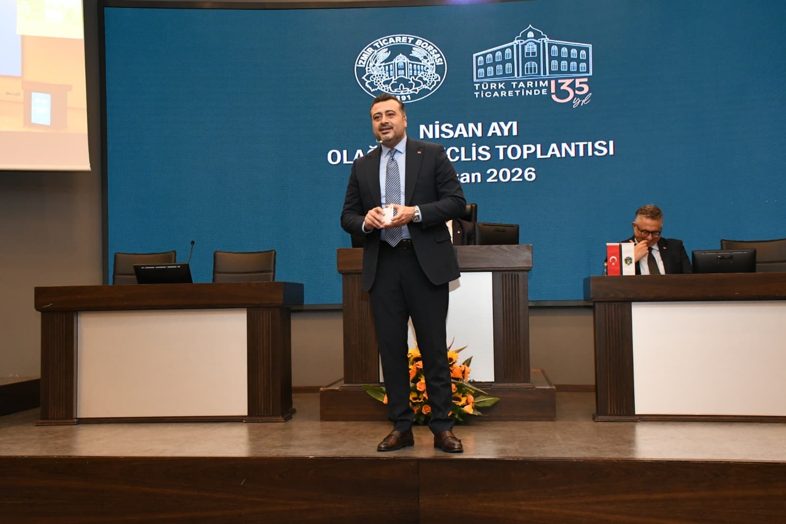 Borsa hizmet binasında düzenlenen törene, İzmir Ticaret Borsası Yönetim Kurulu Başkanı ve Türkiye Odalar ve Borsalar Birliği (TOBB) Yönetim Kurulu Üyesi Işınsu Kestelli, İletişim Başkanlığı İzmir Bölge Müdürü Cengiz Kutlu Yüksel ile Bölge Müdürlüğü uzman personelleri ve Borsa Yönetim Kurulu Üyeleri katıldı.