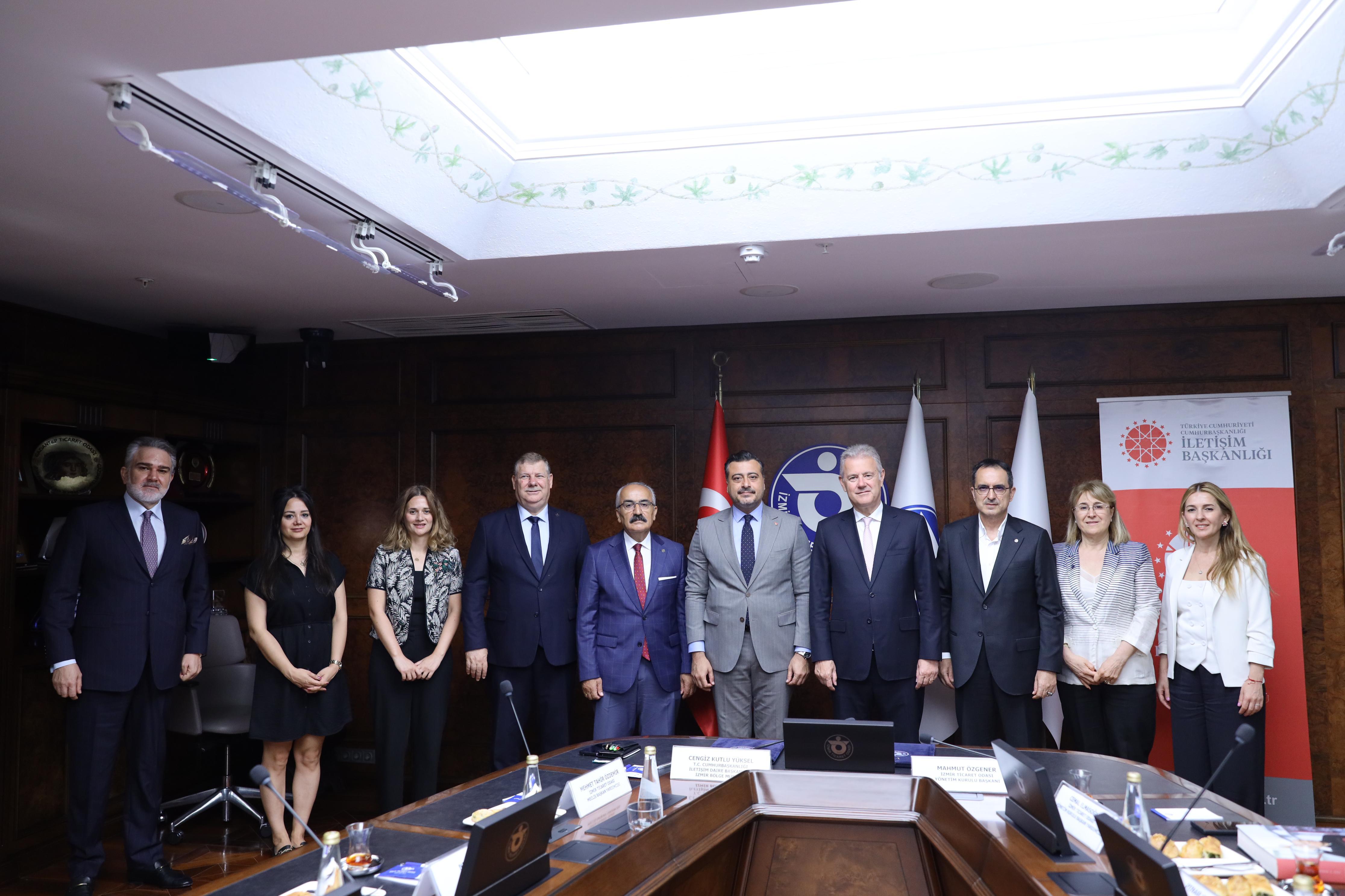 Başkanlığımız İzmir Bölge Müdürlüğü ile İzmir Ticaret Odası arasında gerçekleştirilecek iş birliğine ilişkin protokol, Cumhurbaşkanlığı İletişim Başkanlığı İzmir Bölge Müdürü Cengiz Kutlu Yüksel ve İzmir Ticaret Odası Yönetim Kurulu Başkanı Mahmut Özgener tarafından imzalandı.