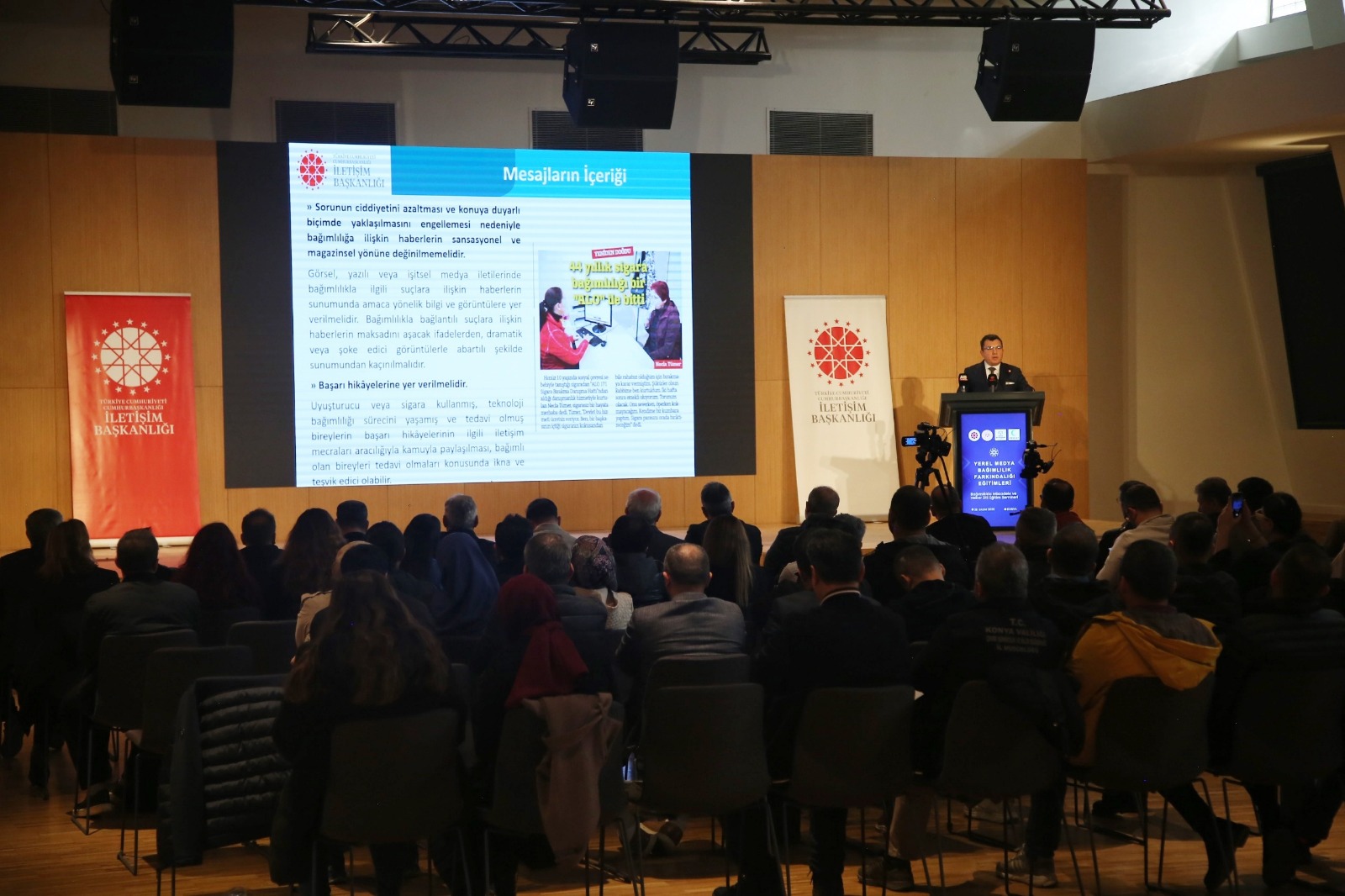 “Uyuşturucu ile ilgili haberlerin medya ilkeleri çerçevesinde ele alınmasını sağlamak ve yerel basını desteklemek amacıyla, Cumhurbaşkanlığı İletişim Başkanlığı tarafından yürütülen eğitimler kapsamında bir aradayız. Bağımlılıkla mücadelede medya mensuplarına yönelik eğitimler ve yayınlar önemli bir yer tutmaktadır. Medya, toplumu bilinçlendirmede, farkındalık oluşturmada ve bağımlılıkla mücadelede etkili bir araç görevini üstlenmektedir. Medya mensuplarına yönelik bu tür eğitimler, bu sorunun topluma doğru aktarılmasını ve kamuoyunun bilinçlenmesini sağlamak amacıyla yapılmaktadır. Seminerimizde kamu kurum ve kuruluşlarının basın ve halkla ilişkiler birimleri, kurumların iletişim koordinatörlükleri, kamu yararına faaliyet gösteren sivil toplum kuruluşlarında görevli personeller ile basın-yayın kuruluşlarımızın genel yayın yönetmenleri, yazı işleri müdürleri ve muhabirler yer alıyor. Katılımlarından dolayı teşekkür ediyoruz.”