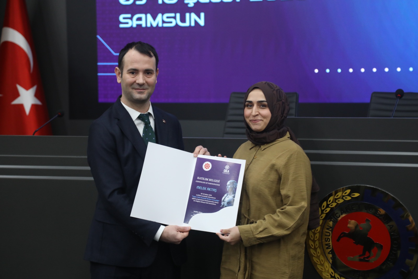 Cumhurbaşkanlığı İletişim Başkanlığı Samsun Bölge Müdürlüğümüz tarafından yürütülen ve Orta Karadeniz Kalkınma Ajansı (OKA) Teknik Destek Programı kapsamında desteklenen eğitimin ardından katılımcı 74 kişiye, Samsun Ticaret ve Sanayi Odası'nda düzenlenen törenle sertifikaları dağıtıldı.