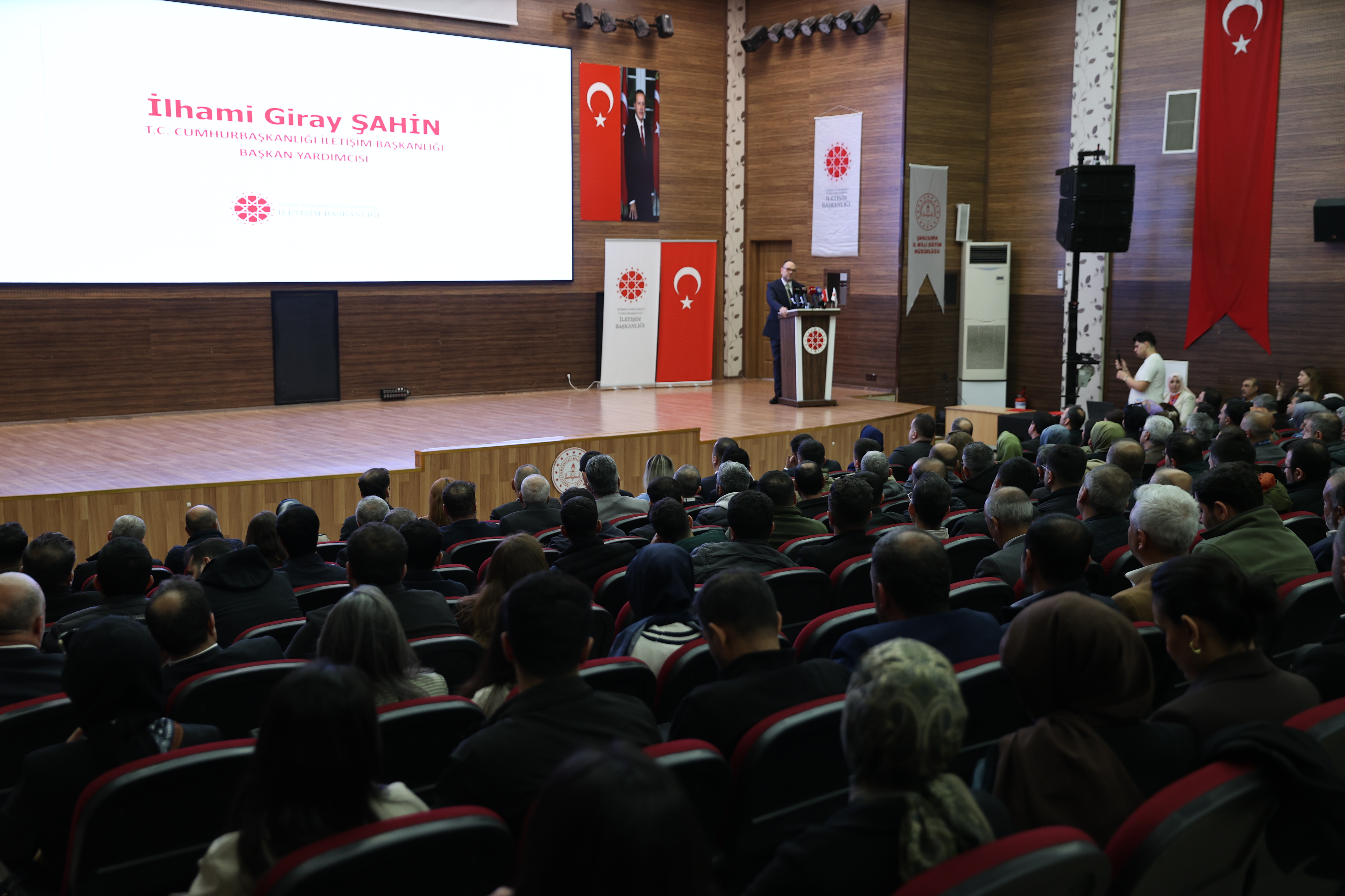 İletişim Başkan Yardımcısı İlhami Giray Şahin, Millî Eğitim Müdürlüğü konferans salonunda gerçekleştirilen "İletişimin Yeni Yüzyılı Güçlü İletişim, Etkin Kamu: Şanlıurfa Eğitim Programı"nda yaptığı konuşmada, Cumhurbaşkanlığı İletişim Başkanlığı olarak sadece bilgi aktaran bir kurum olmadıklarını aynı zamanda Cumhurbaşkanı'nın ve devletin hakikati koruma misyonuna öncülük ettiklerini belirtti.