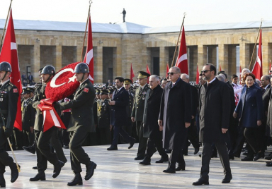 Türkiye Cumhuriyeti’nin kurucusu Büyük Önder Mustafa Kemal Atatürk, ebediyete intikalinin 80’inci yılında Anıtkabir’de düzenlenen devlet töreniyle anıldı. Anıtkabir’deki tören, saat 08.45’te devlet erkanının Aslanlı Yol’da yürüyüşüyle başladı. Türkiye Cumhurbaşkanı Recep Tayyip Erdoğan başkanlığındaki kortejde, TBMM Başkanı Binali Yıldırım, Cumhurbaşkanlığı Kabinesi üyeleri, CHP Genel Başkanı Kemal Kılıçdaroğlu, MHP Genel Başkanı Devlet Bahçeli, İYİ Parti Genel Başkanı Meral Akşener, BBP Genel Ba...