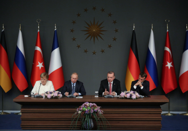 Türkiye Cumhurbaşkanı Recep Tayyip Erdoğan’ın ev sahipliğinde, Rusya Devlet Başkanı Vladimir Putin, Fransa Cumhurbaşkanı Emmanuel Macron, Almanya Başbakanı Angela Merkel’in katılımıyla Vahdettin Köşkü‘nde gerçekleştirilen Suriye konulu dörtlü zirvenin ardından liderler, basın toplantısı düzenledi. Cumhurbaşkanı Erdoğan, konuşmasına, “Bu önemli toplantı vesilesiyle dostlarımızı İstanbul’da ağırlamaktan duyduğum memnuniyeti özellikle ifade etmek istiyorum. Suriye konusunda istişarelerde bulunmak üzere davetimize icabet eden Sayın Putin, Sayın Macron, Sayın Merkel’e şahsım,...