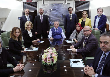 Haberler Cumhurbaşkanı Erdoğan, Katar ziyareti dönüşü gazetecilerle söyleşi gerçekleştirdi İletişim Başkanlığı 26 11 2019