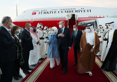 Haberler Katar’ın başkenti Doha’ya varan Cumhurbaşkanı Erdoğan, havalimanında Katar Maliye Bakanı ve beraberindeki heyet tarafından karşılandı İletişim Başkanlığı 06 12 2021
