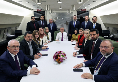 Haberler Cumhurbaşkanı Erdoğan, Macaristan dönüşü uçakta gazetecilerin sorularını yanıtladı İletişim Başkanlığı 08 11 2024