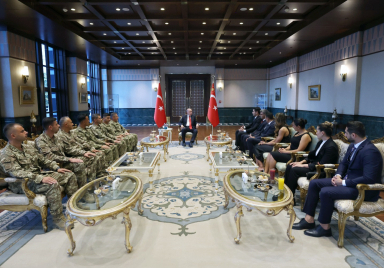 Haberler Cumhurbaşkanı Erdoğan, Karabağ Savaşı‘nda şehit olan Azerbaycan askerlerinin aileleriyle görüştü İletişim Başkanlığı 30 08 2024