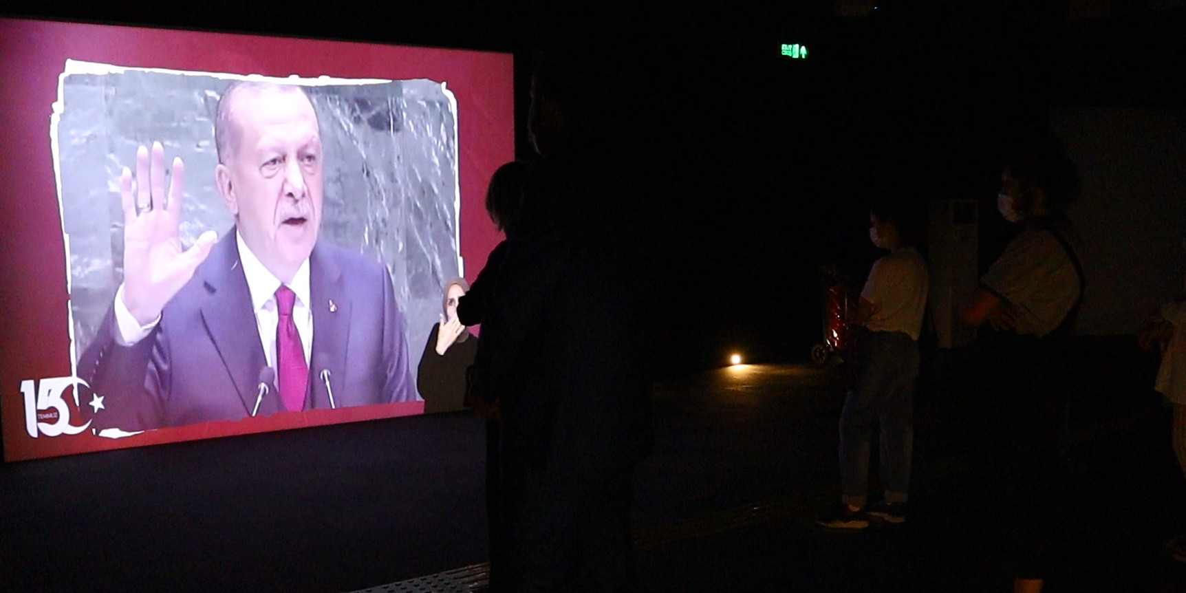 Ardından gelen hologram gösterim alanında “wireframe” teknolojisi ile yapılan hologram gösterisi izlenebiliyor. Hologram gösterisi izlenirken, hemen yanında bulunan projeksiyon ekranında 15 Temmuz hain darbe girişimine teşebbüs eden FETÖ’nün geçmişi ve bugünü hakkında bilgi veren bir video film çalışması takip edilebiliyor.