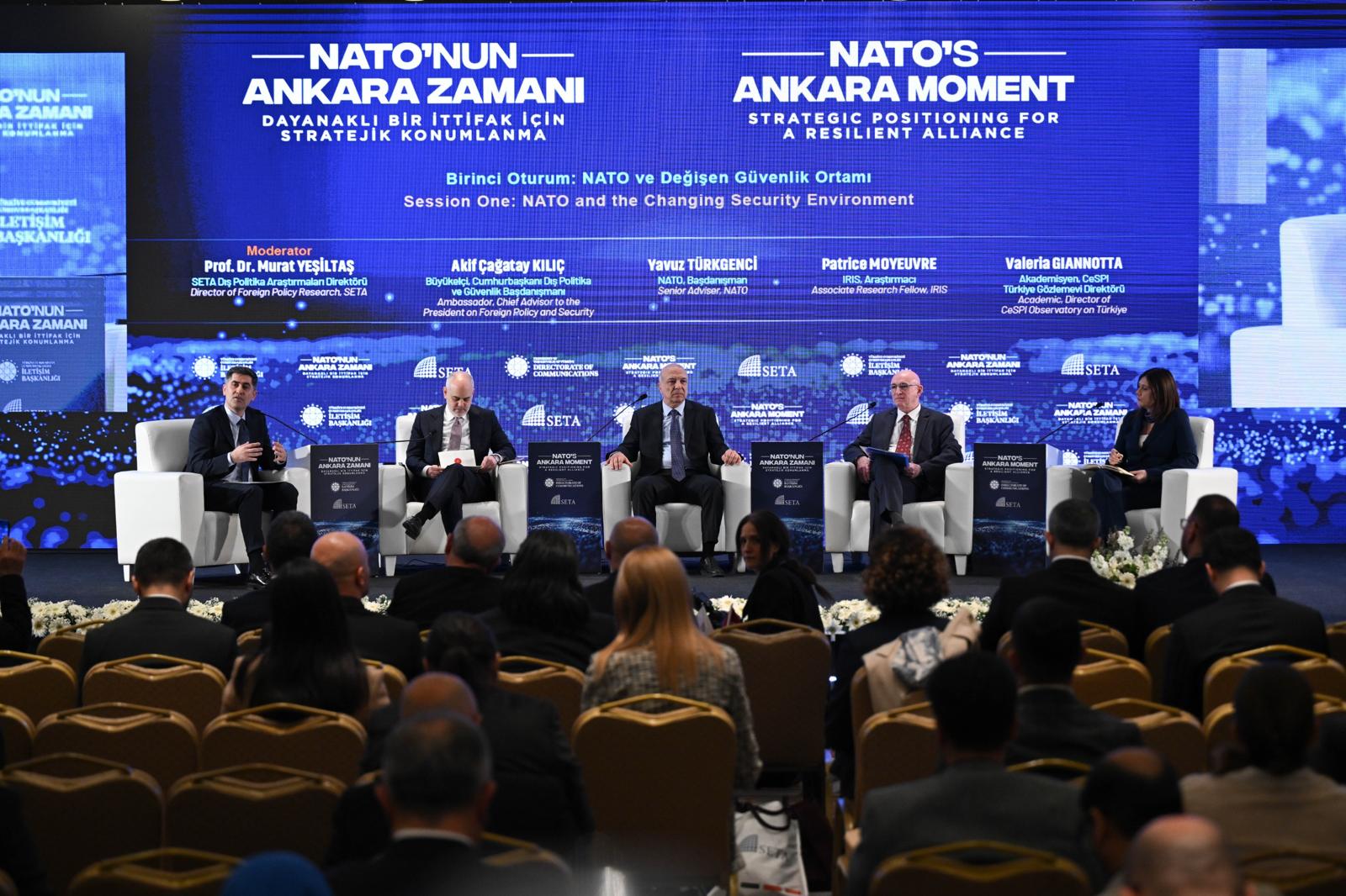 Açış konuşmalarını Millî Savunma Bakanı Yaşar Güler, Cumhurbaşkanlığı İletişim Başkanı Prof. Dr. Burhanettin Duran ve SETA Genel Koordinatörü Prof. Dr. Nebi Miş’in yaptığı programda Türkiye’nin NATO’daki kritik rolünü anlatan bir video gösterimi yapıldı. “NATO ve Değişen Güvenlik Ortamı” başlıklı birinci oturuma SETA Dış Politika Araştırmaları Direktörü Prof. Dr. Murat Yeşiltaş moderatörlük etti. Oturumda Cumhurbaşkanı Dış Politika ve Güvenlik Başdanışmanı Akif Çağatay Kılıç, Korgeneral Yavuz Türkgenci, IRIS Araştırmacısı Patrice Moyeuvre ve CeSPI (Uluslararası Politikalar Çalışma Merkezi) Türkiye Gözlemevi Bilimsel Direktörü Dr. Valeria Giannotta konuşmacı olarak yer aldı.