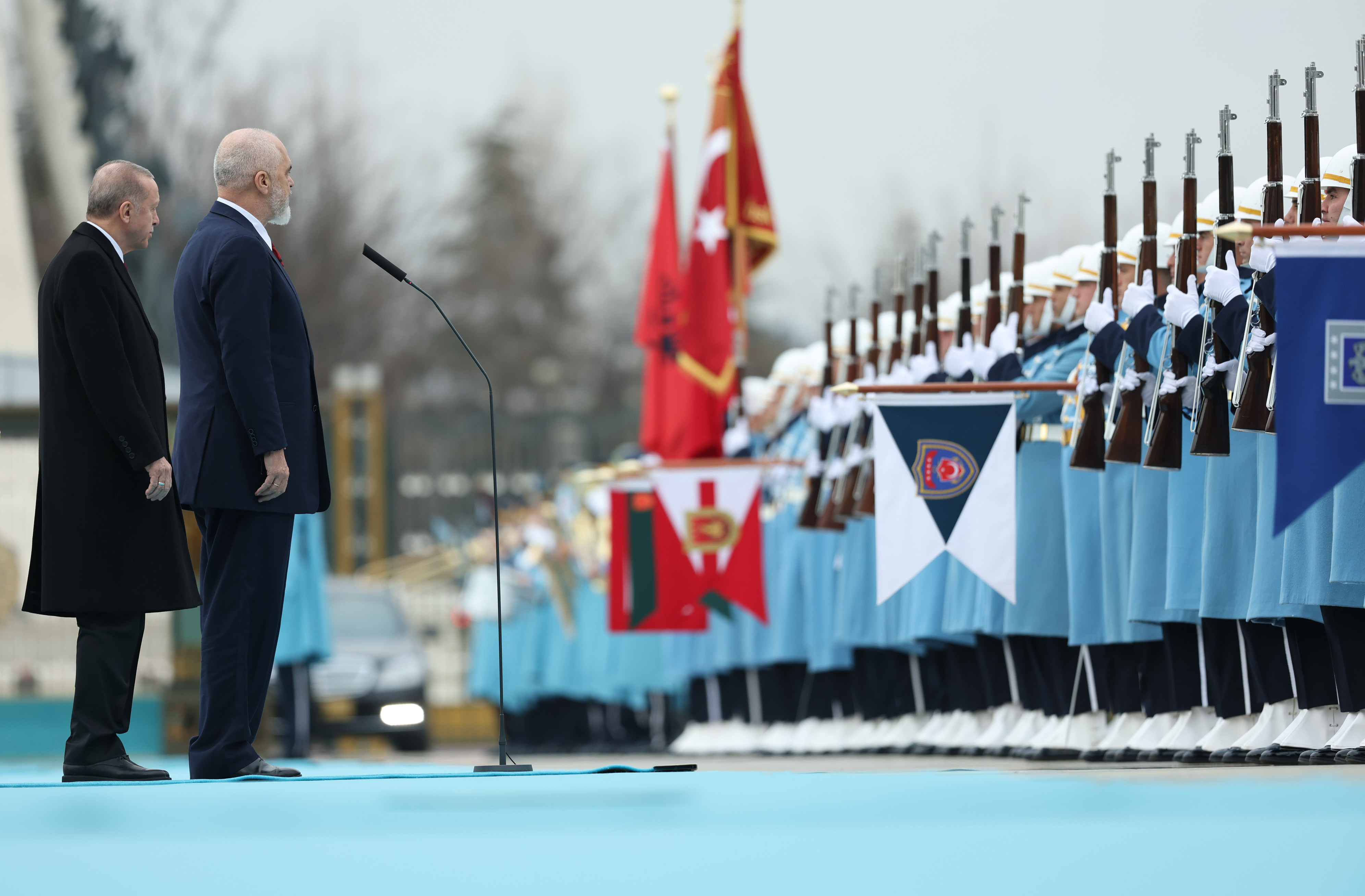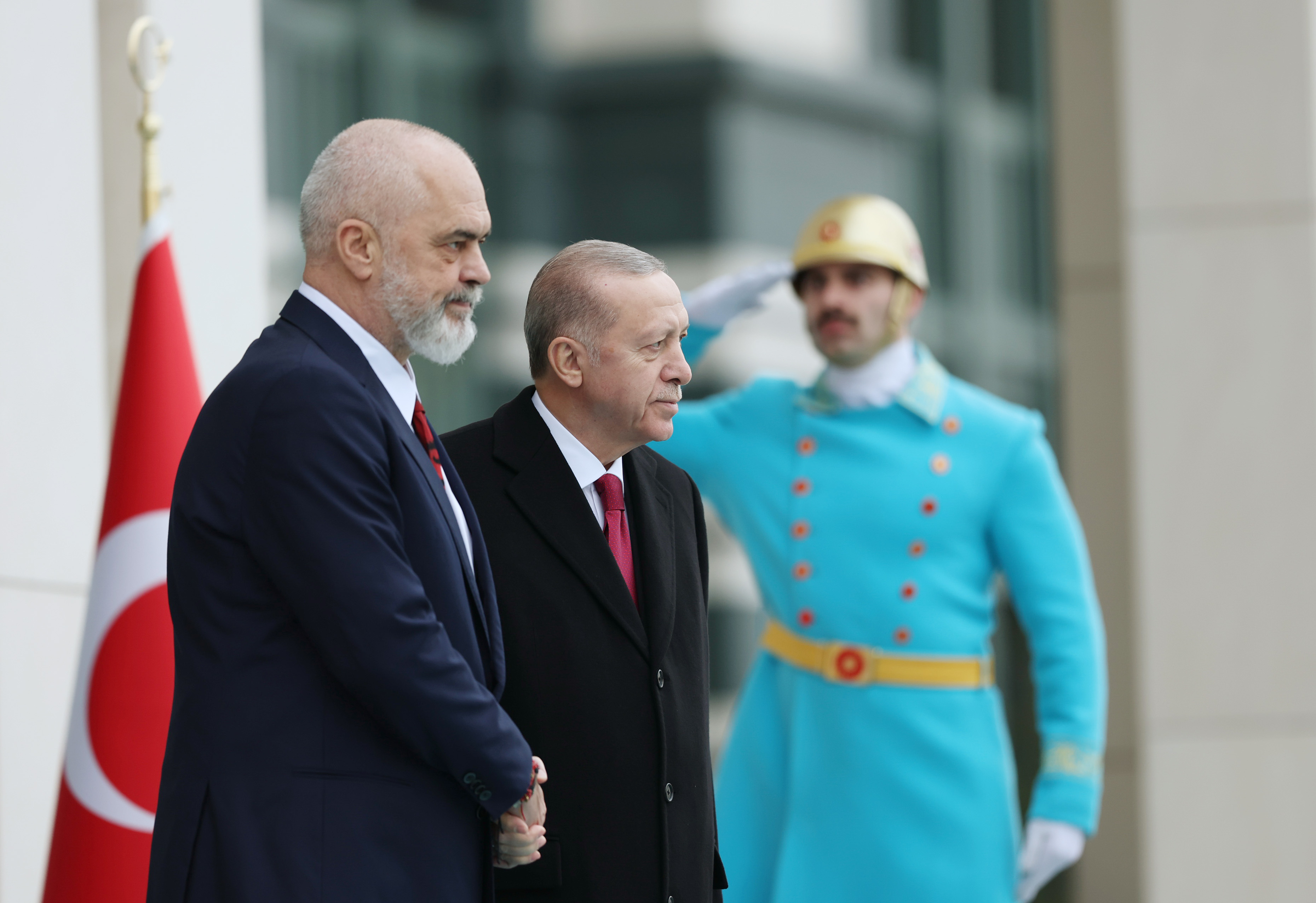 Cumhurbaşkanı Recep Tayyip Erdoğan, Türkiye'ye ziyarette bulunan Arnavutluk Başbakanı Edi Rama'yı resmî törenle karşıladı.