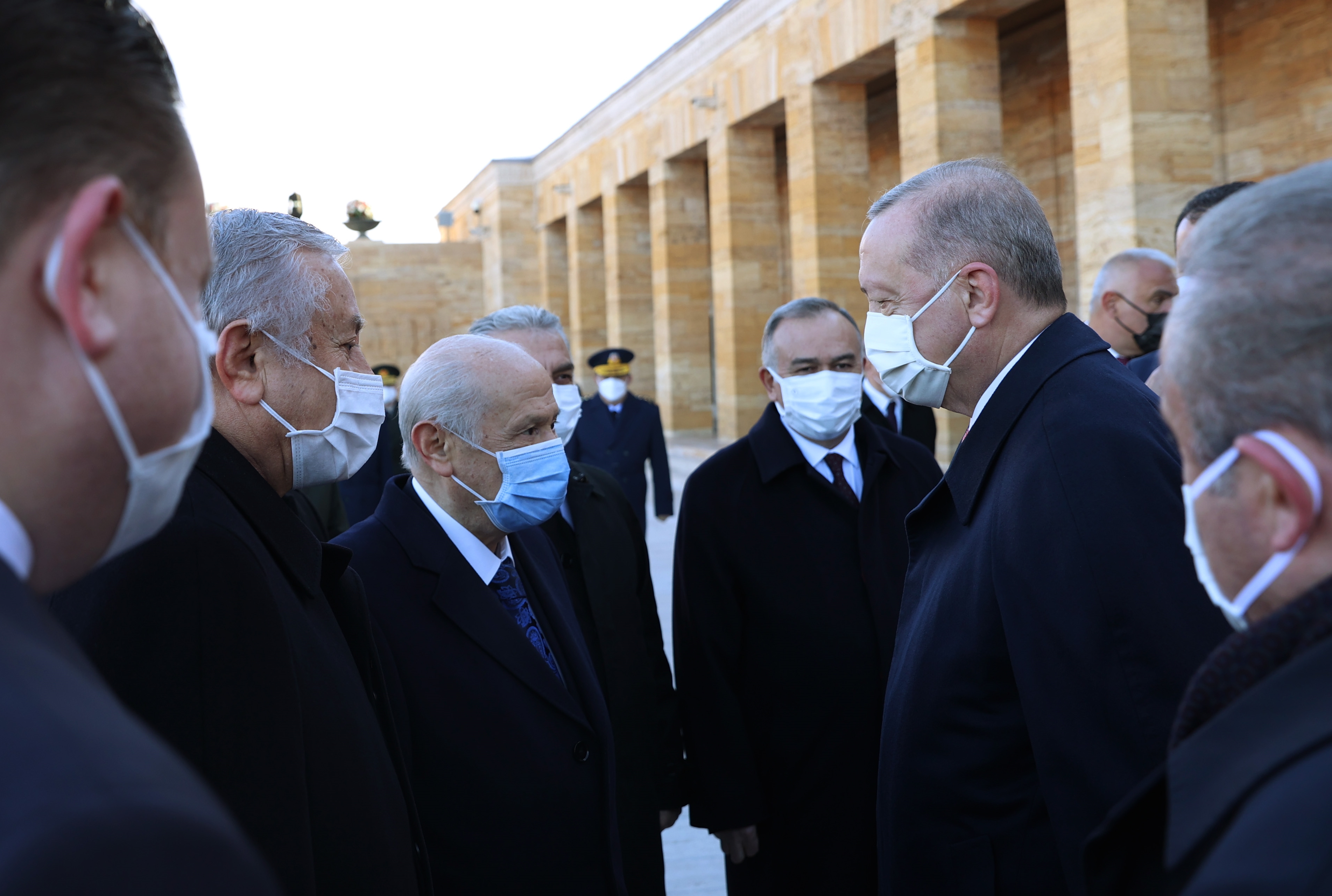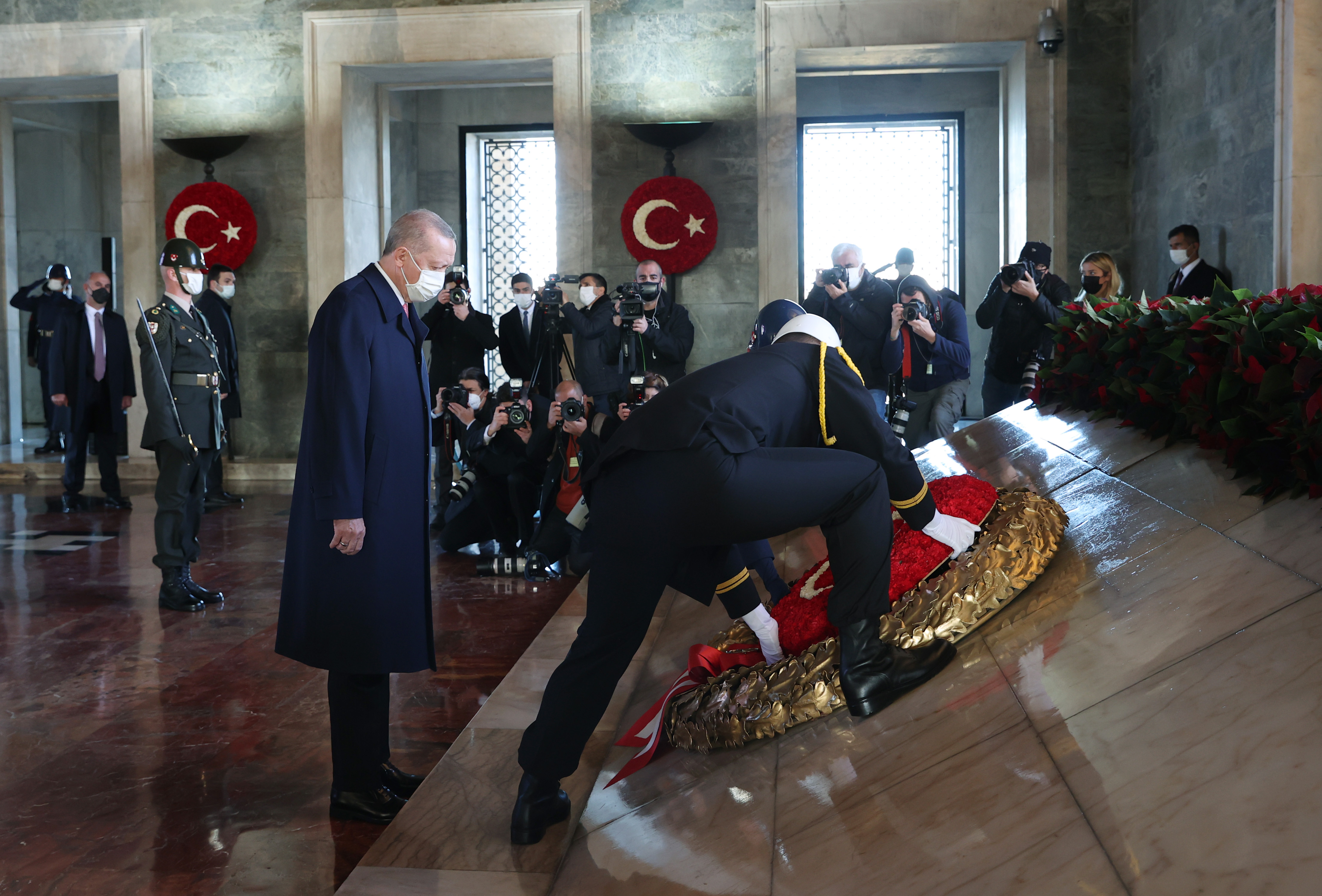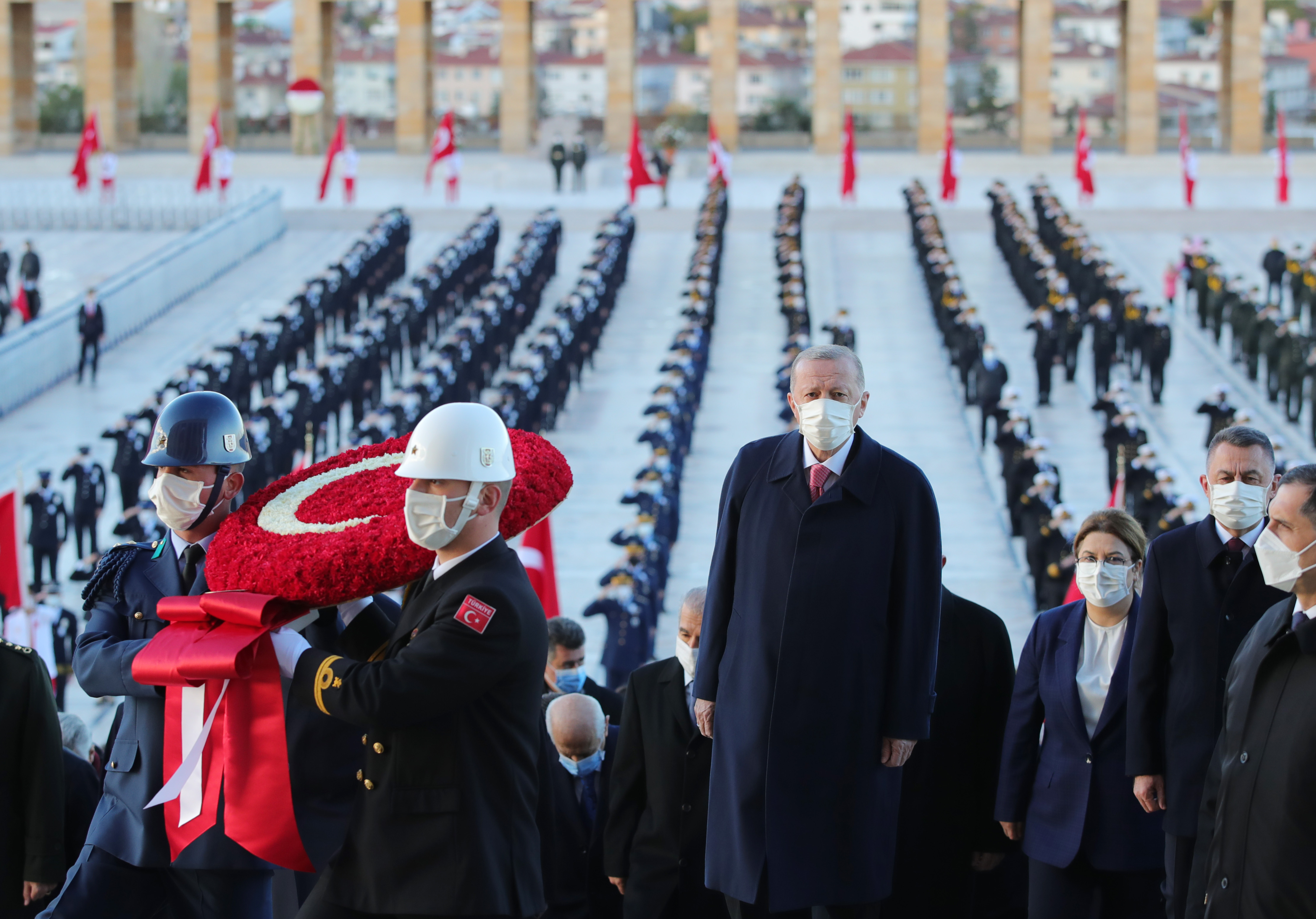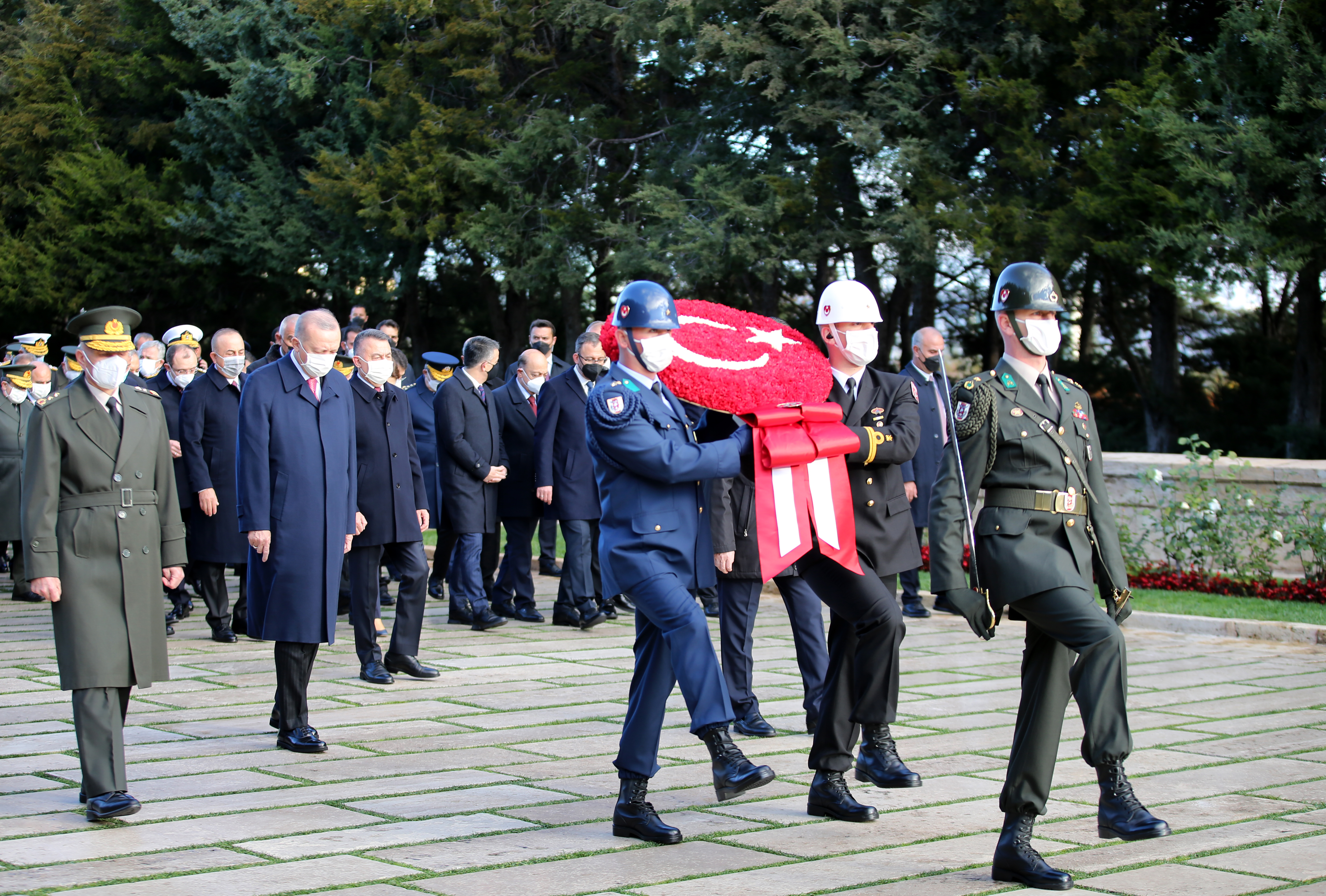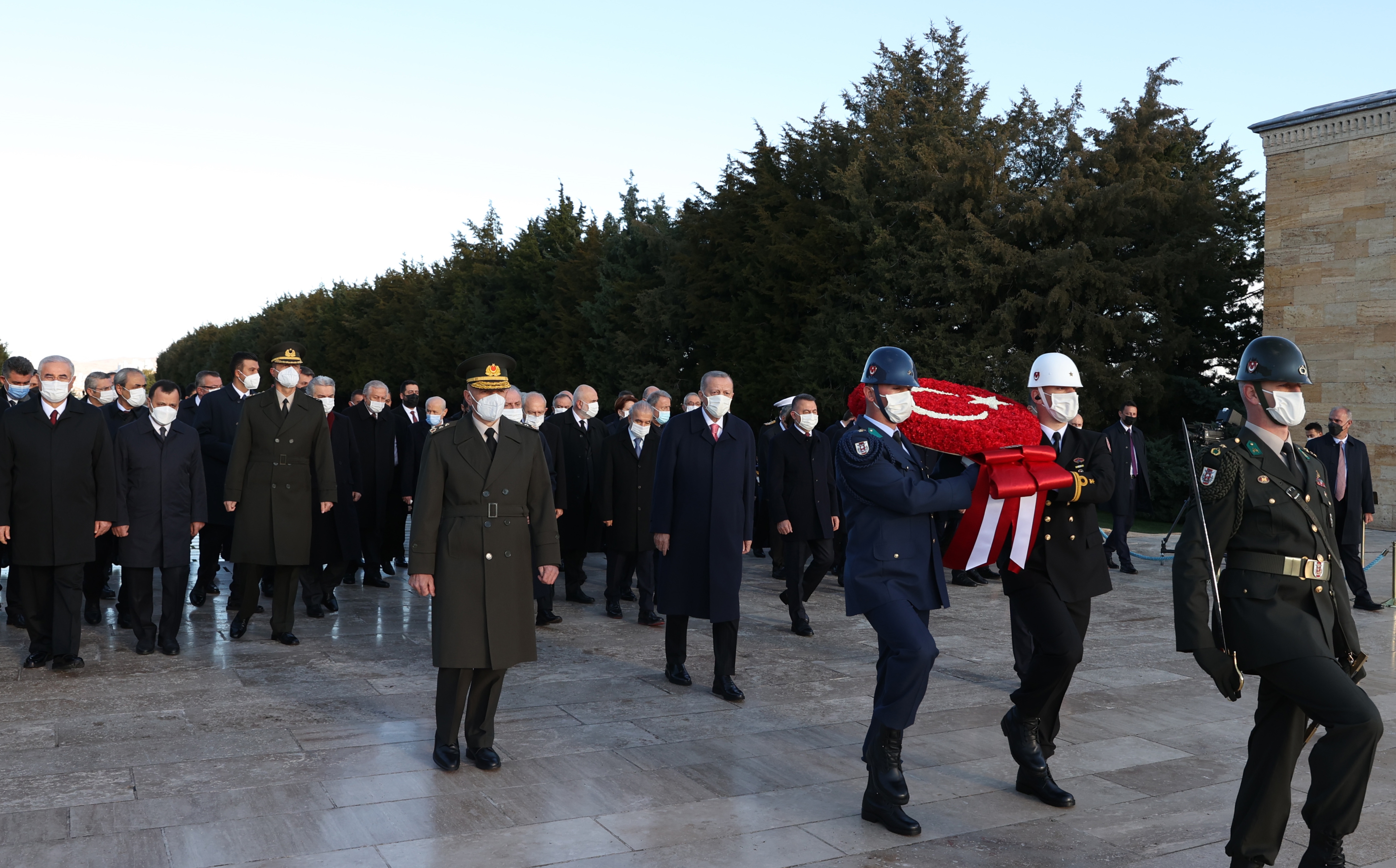 Cumhurbaşkanı Erdoğan, kırmızı beyaz karanfillerden oluşan ay yıldızlı çelengi, Atatürk'ün mozolesine bıraktı. Atatürk'ün 83 yıl önce vefat ettiği saat olan 09.05'te saygı duruşunda bulunuldu ve ardından İstiklal Marşı okundu.