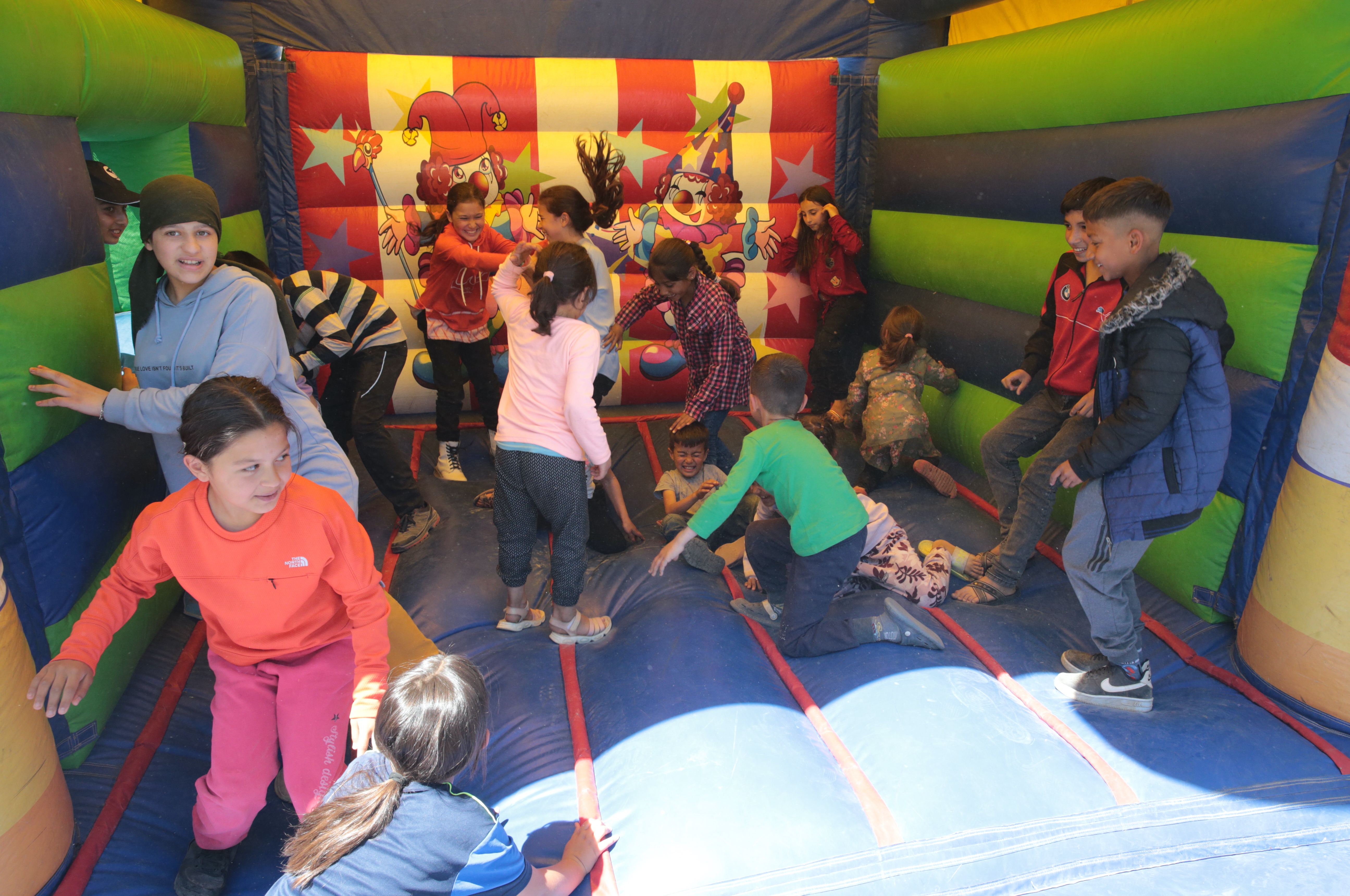 "Deprem Bölgesi Etkinlik Tırları Projesi" kapsamında depremzede çocukları sosyal yaşama adapte etmek ve afetin izlerini silmek için Türkoğlu ilçesindeki Kılılı Geçici Barınma Merkezi ve Onikişubat ilçesindeki EXPO alanında etkinlikler düzenlendi.