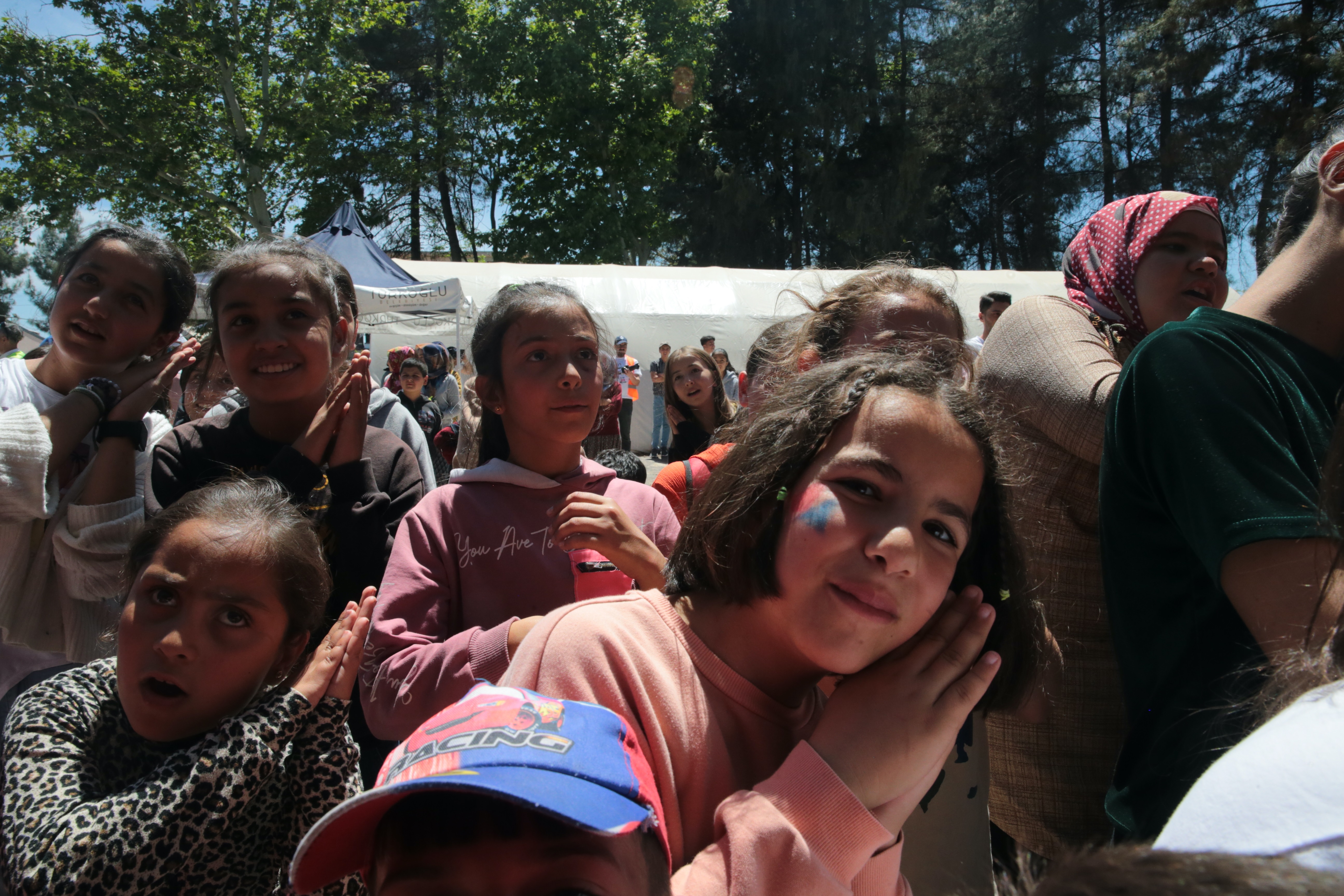 Kendilerine depremi unutturduğu için yetkililere teşekkür eden Başaran, "Etkinlikte gösteriler yapıldı, yüzlerimizi boyadılar, pamuk şeker yiyeceğiz, sonra balonlardan şekiller yapacaklar." dedi.