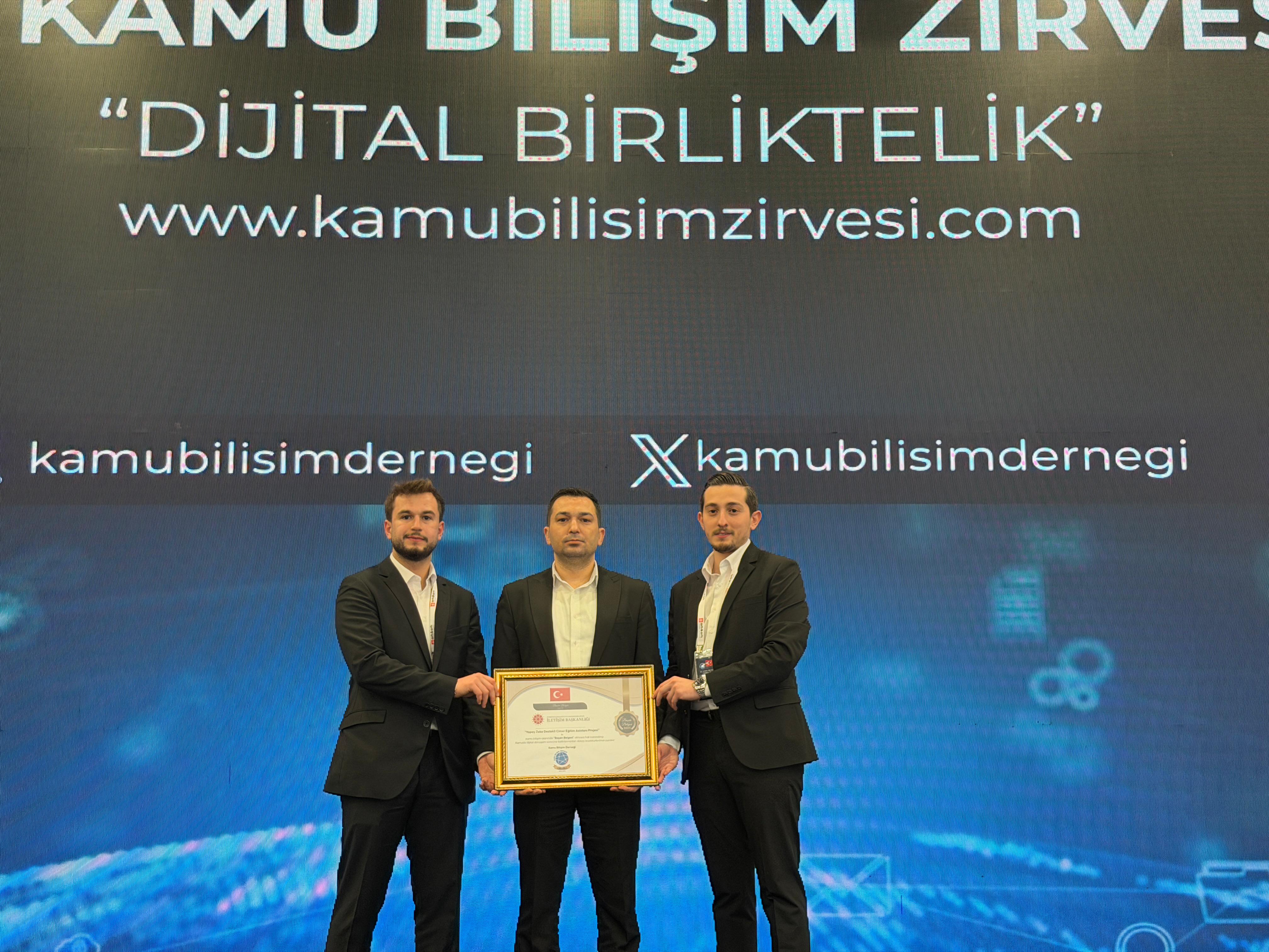 Kurumumuz iç kaynakları tarafından geliştirilen yapay zekâ destekli projeler Kamu Bilişim Derneği tarafından başarı belgesine layık görüldü.