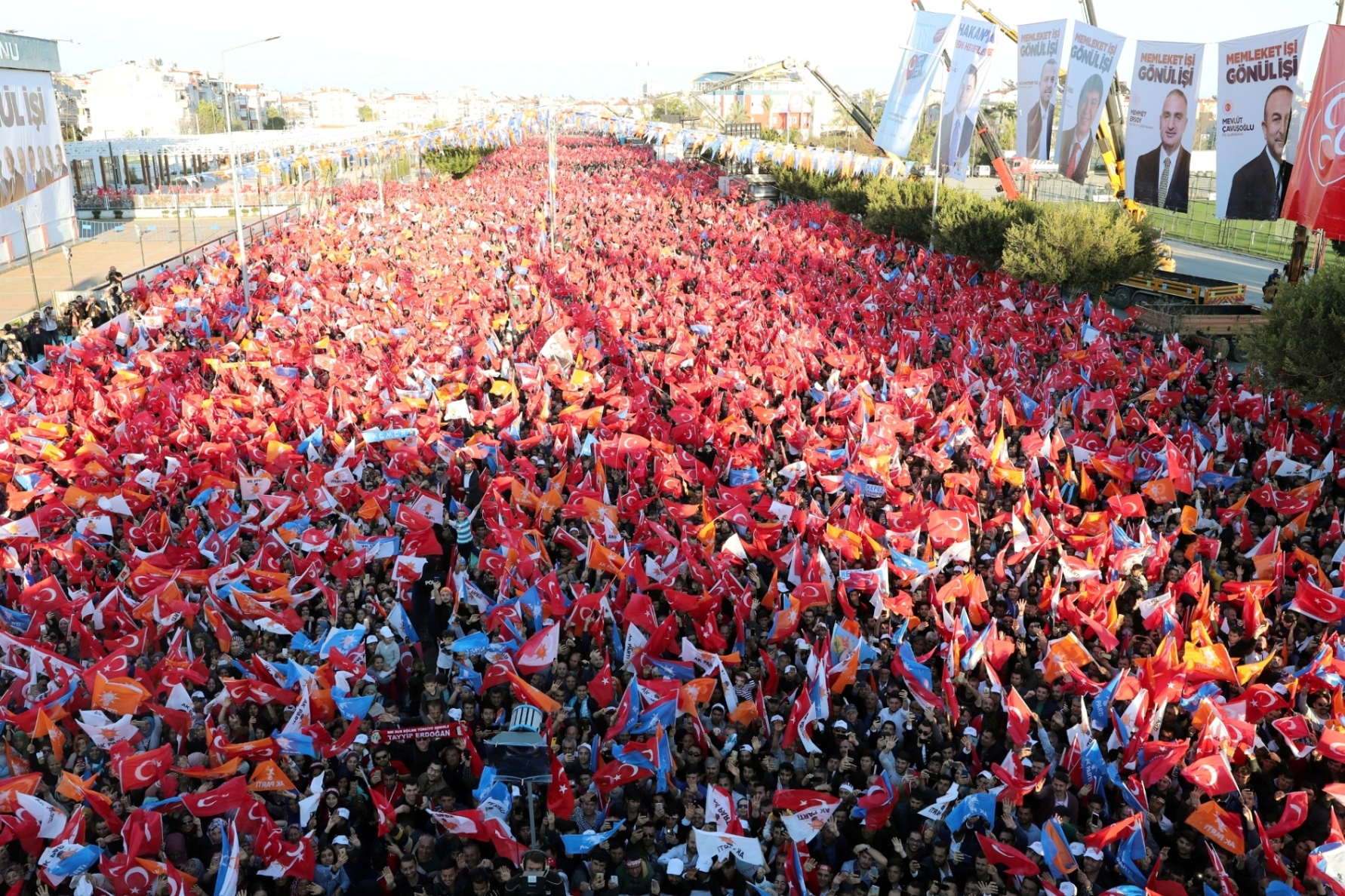"Gençler, yazmaz olsun kara yazı yazanlar, yer bulmasın aramızı bozanlar, diyorum. Evelallah Antalya böyle coştukça, Antalya böyle gürledikçe, Antalya böyle iradesine, ülkesine, şehrine sahip çıktıkça kimse bizim aramıza giremez. Antalyalı kardeşlerim görenleri kıskandıran şu sevdayla bizi bağrına bastıkça Allah'ın izniyle kimse bizi yolumuzdan alıkoyamaz. Antalya dik durdukça, sağlam durdukça hiçbir Haçlı bozuntusu Türkiye'nin yükselişinin önüne geçemez. Şimdi sizlere soruyorum ama öyle bir cevap verin ki sesiniz ta Suriye'nin kuzeyinden duyulsun. Öyle bir haykırın ki kendini bilmez Haçlı artıklarının yürekleri titresin. Öyle bir ses verin ki 565 yıldır İstanbul'un fethini içine sindiremeyen Bizans heveslilerinin akılları başlarına gelsin. Öyle bir gürleyin ki birliğimize, dirliğimize, bağımsızlığımıza saldıran teröristlerin kabusu olsun. Öyle bir seslenin ki Pensilvanya'daki hainin, Kandil'deki katillerin dizlerinin bağı çözülsün."