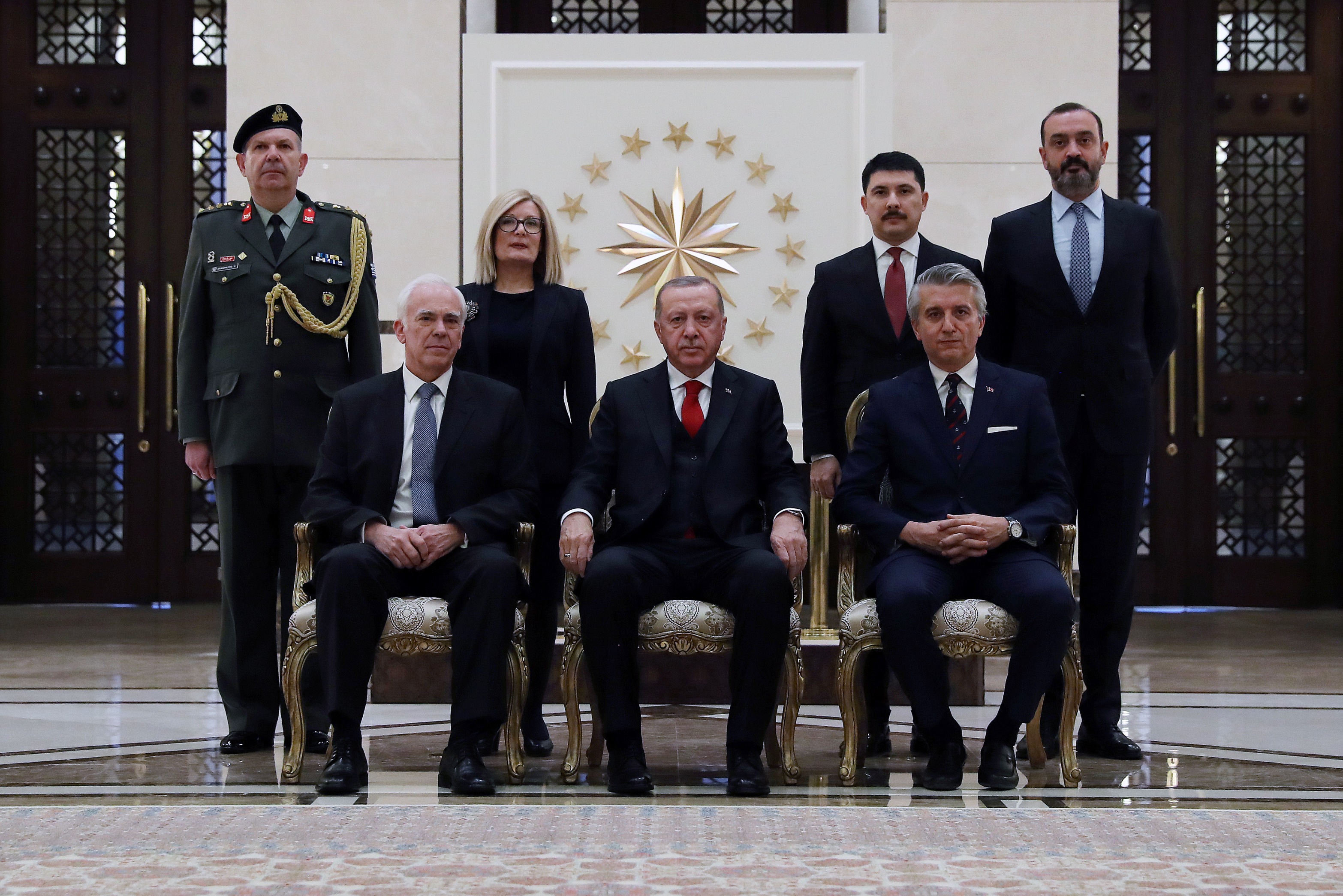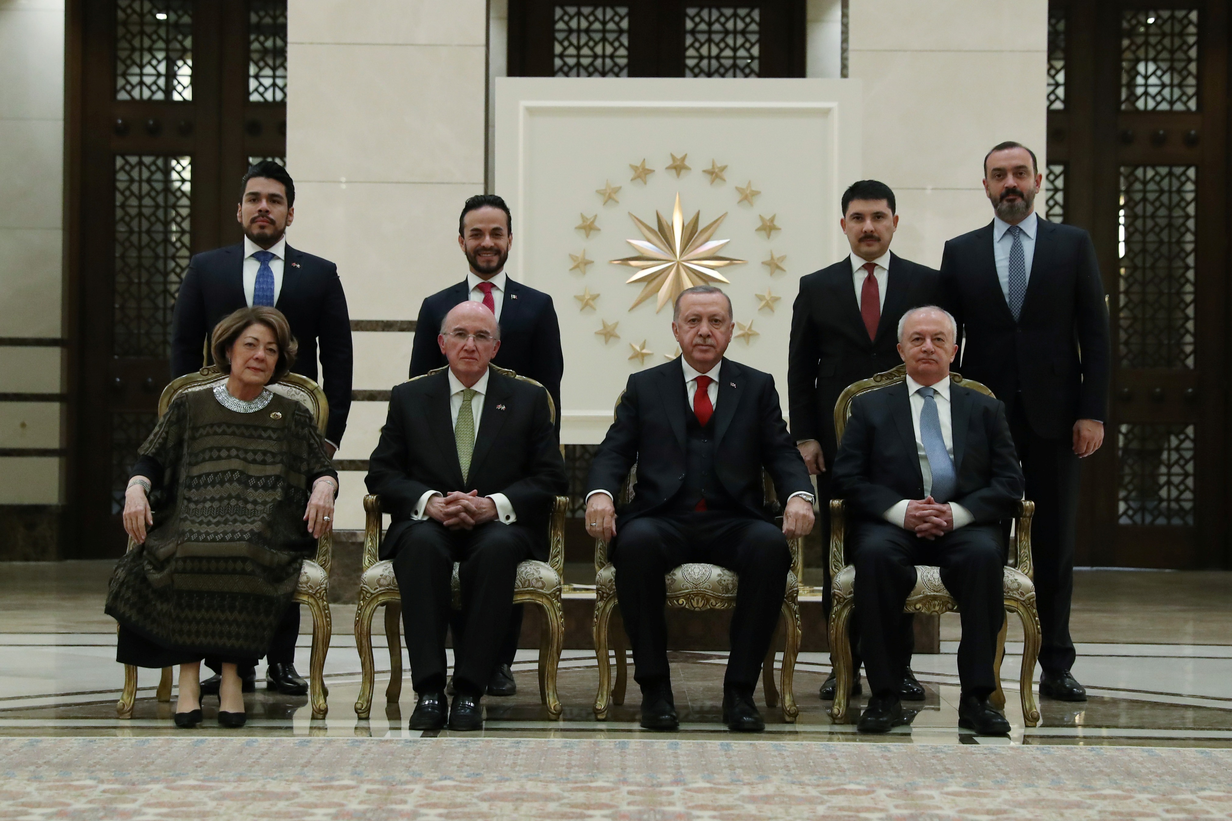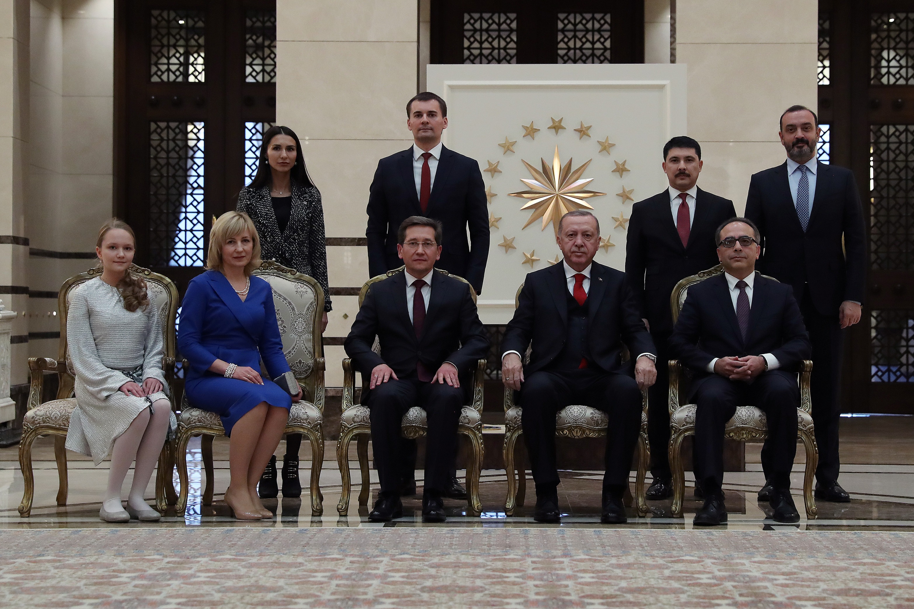 Büyükelçilerin aileleri ve bazı büyükelçilik mensuplarının Cumhurbaşkanı Erdoğan’a takdim edilmesinin ardından hatıra fotoğrafı çektirildi.