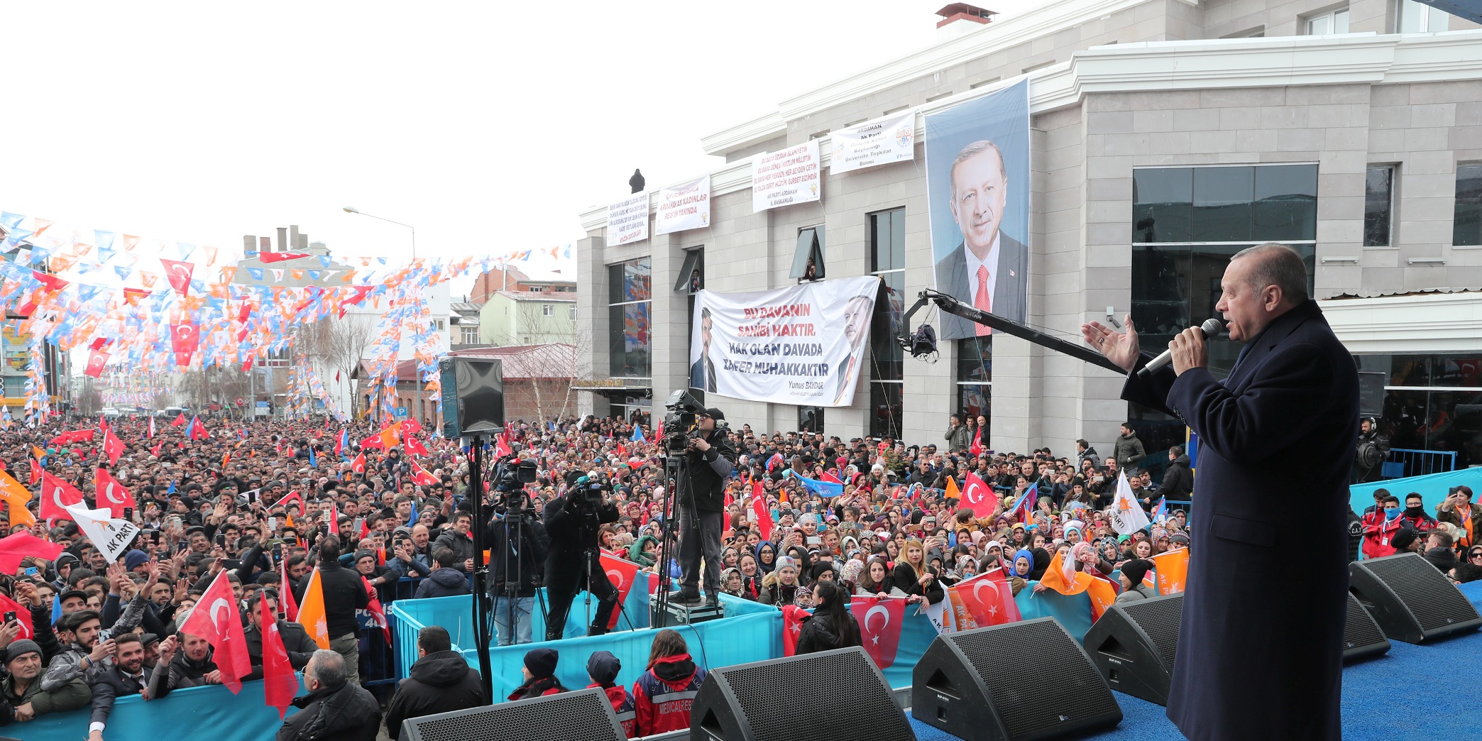 Alandakilere, "Ardahan 31 Mart'ta, istikrar ve güven ortamına devam diyor musun?", "Ardahan, 31 Mart'ta büyük ve güçlü Türkiye için yeni bir şahlanışa var mısın?" diye soran Erdoğan, "Tek millet, tek bayrak, tek vatan, tek devlet. Bir olacağız, iri olacağız, diri olacağız, kardeş olacağız, hep birlikte Türkiye olacağız." sözleriyle konuşmasını tamamladı.