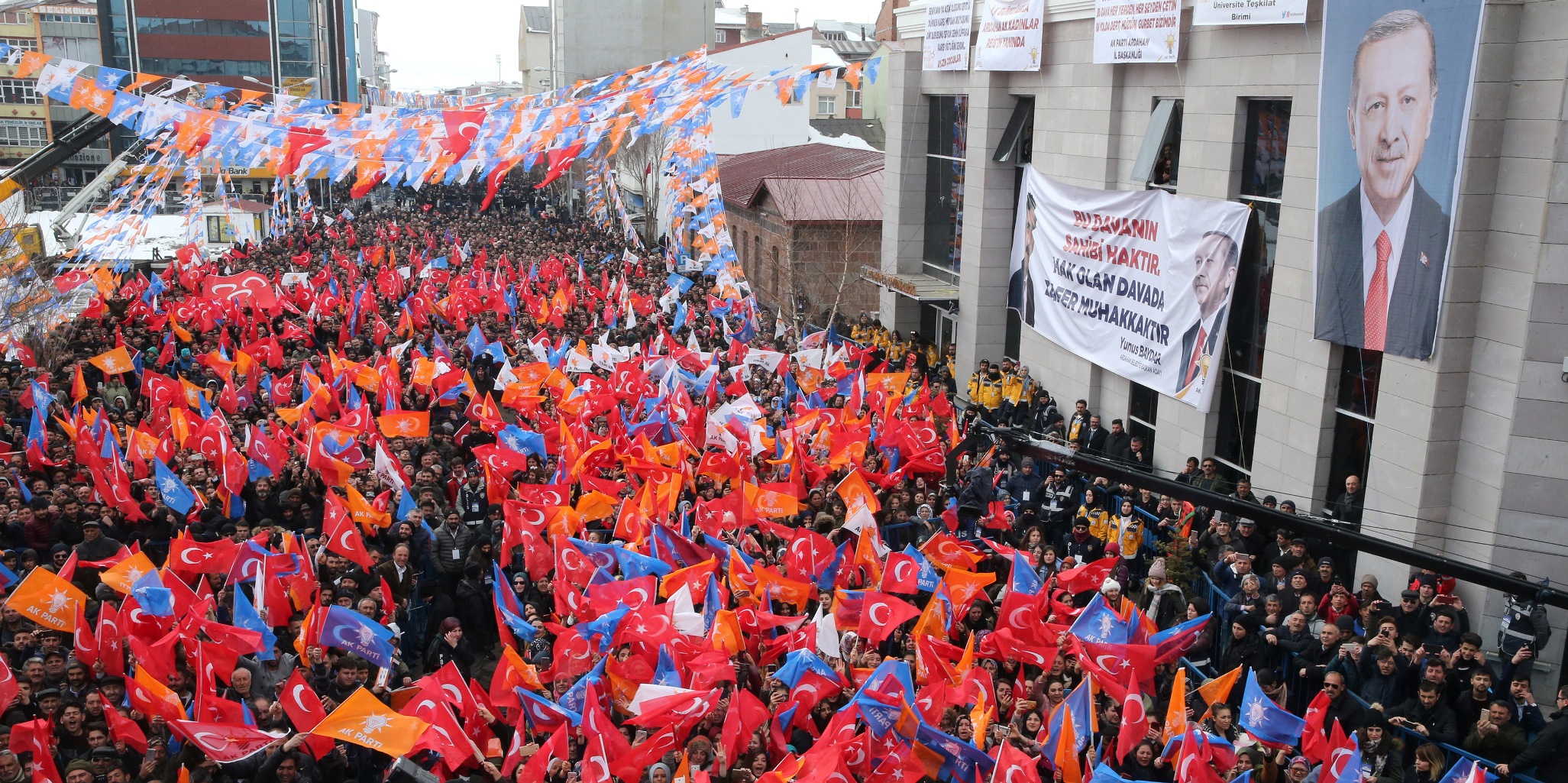Erdoğan, "Dik dur eğilme, Ardahan seninle" sloganları üzerine, "Hiç endişeniz olmasın. Evelallah biz sadece ve sadece Allah'ın huzurunda rükuda ve secdede eğildik. Onun dışında asla. İşte bu gördüğünüz makus talih, bizlerin gayretleriyle 3 Kasım 2002'den itibaren değişmeye başladı." ifadelerini kullandı.