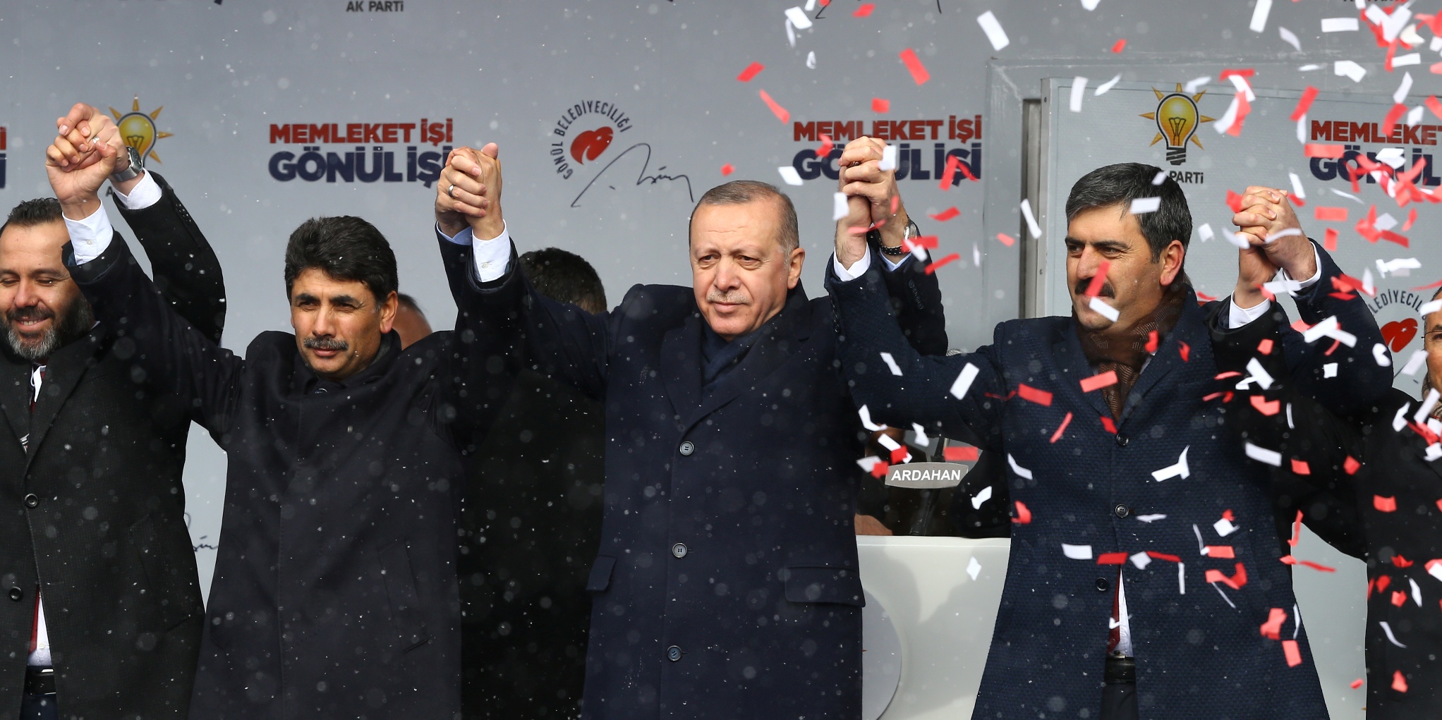 "Sizlerden bir söz daha almak istiyorum. Ardahan, 31 Mart'ta ülkene sahip çıkıyor musun? Ardahan, 31 Mart'ta geleceğine sahip çıkıyor musun? Ardahan, 31 Mart'ta sandığa, demokrasiye sahip çıkıyor musun? Ardahan, 31 Mart'ta tevazu, samimiyet ve gayretle 'memleket işi, gönül işi' diyor musun? Ardahan, 31 Mart'ta gönül belediyeciliğine 'Evet' diyor musun?" diye soran ve "Evet" yanıtını alan Erdoğan, "Rabb'im sizlerden razı olsun. Siz ne güzel insanlarsınız, onun için sizleri Allah için seviyorum. Rabb'im sizlere hizmetten bizleri alıkoymasın, sizlere efendi olmaya değil hizmetkar olmaya geldik, böyle de devam edeceğiz." dedi.