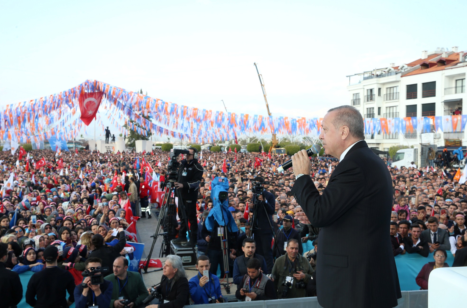 Muğla'da Büyükşehir ve 11 ilçede AK Parti, 2 ilçede ise Cumhur İttifakı'ndaki ortakları MHP adaylarıyla seçime girdiklerini belirten Erdoğan, "Sizlerden gerek AK Parti'nin adaylarına gerekse Cumhur İttifakı adaylarına çok güçlü destek bekliyorum. Fethiye'den tarih yazmasını bekliyorum." diye konuştu.