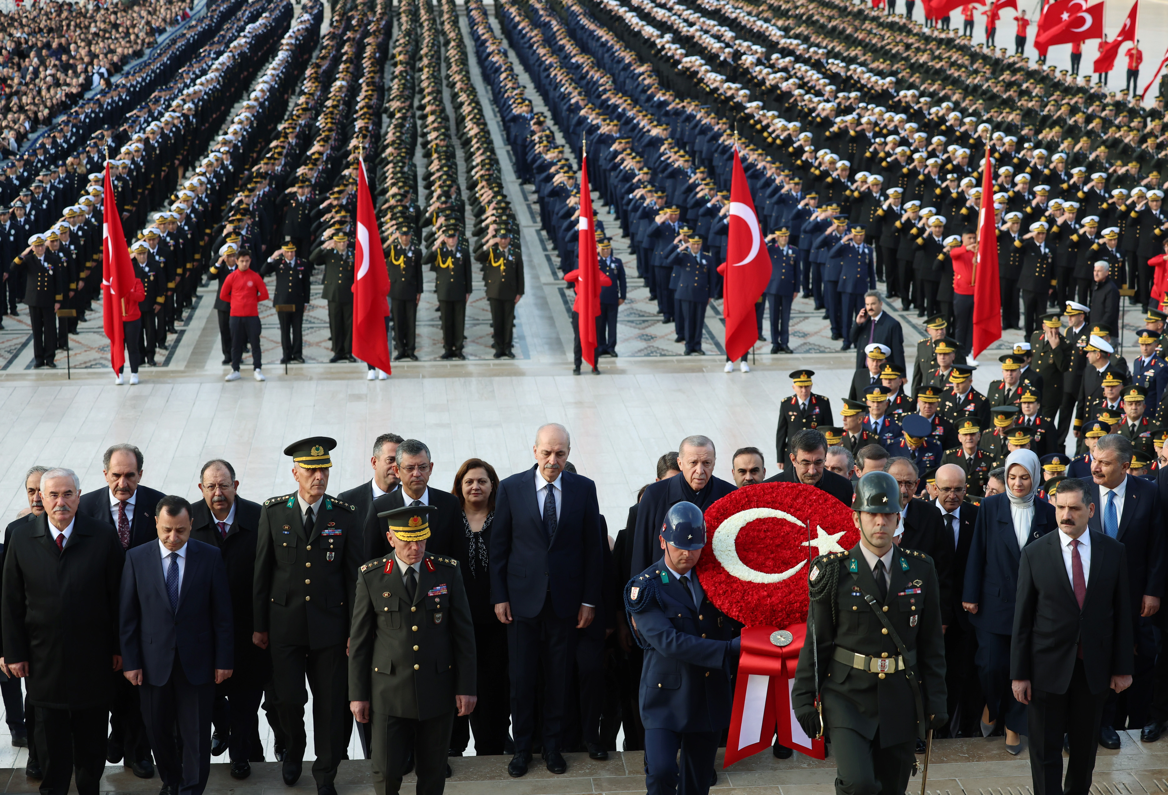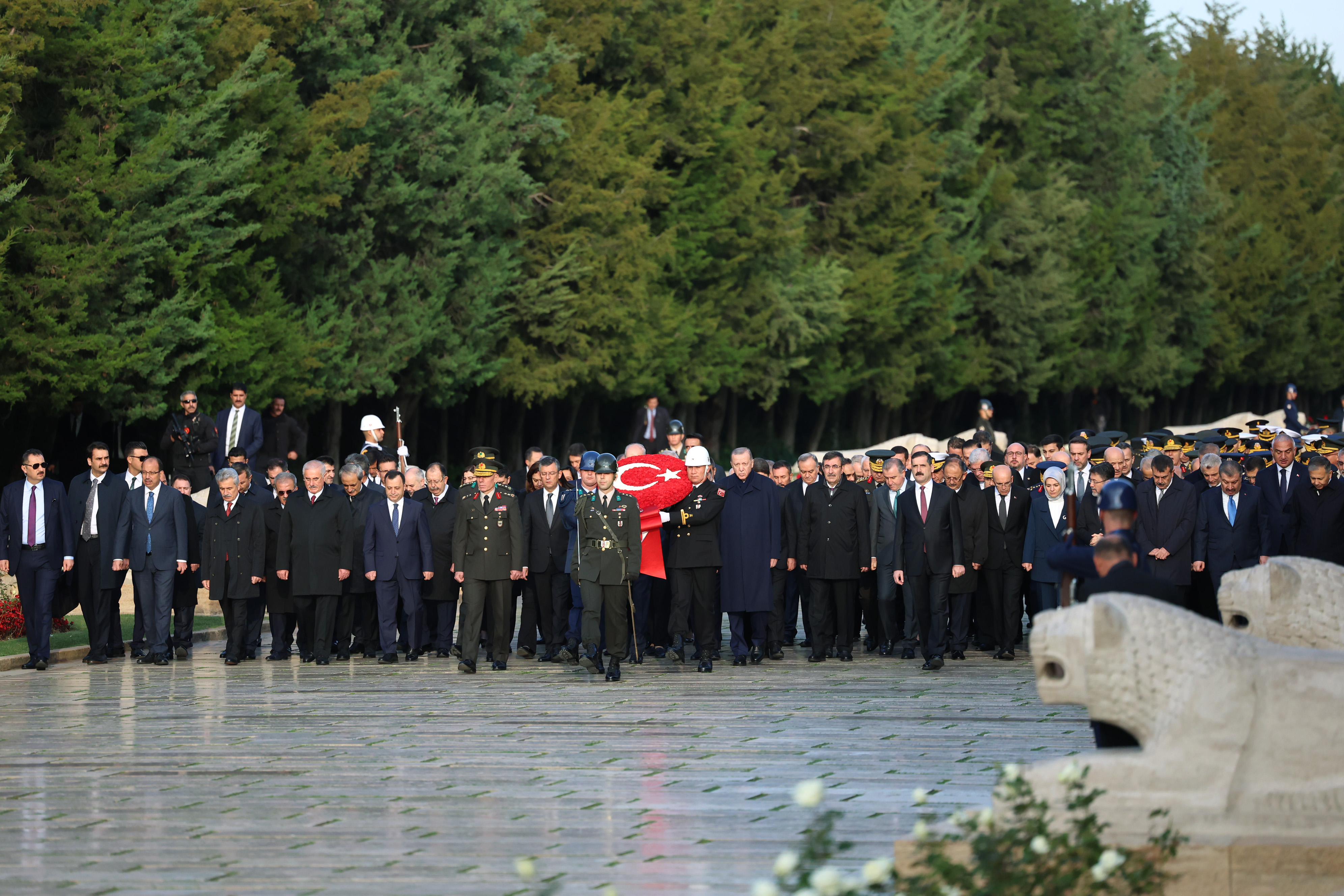 Cumhurbaşkanı Recep Tayyip Erdoğan başkanlığındaki kortejde TBMM Başkanı Numan Kurtulmuş, Cumhurbaşkanlığı Kabinesi üyeleri, CHP Genel Başkanı Özgür Özel, MHP Genel Başkanı Devlet Bahçeli, İYİ Parti Genel Başkanı Meral Akşener, yüksek yargı organlarının başkanları, TSK komuta kademesi, siyasi parti temsilcileri, bürokratlar ve diğer devlet erkanı yer aldı.