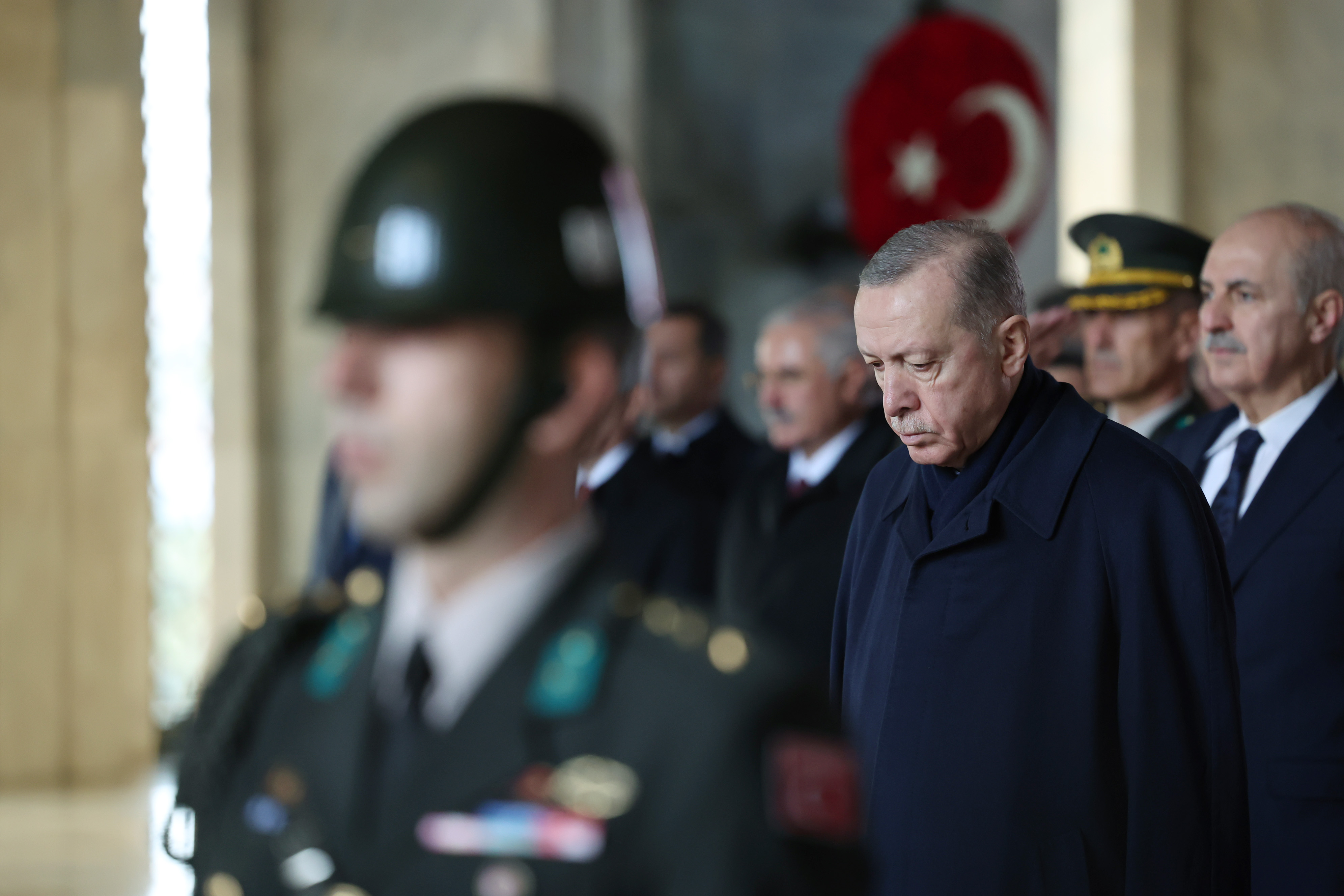 Cumhurbaşkanı Erdoğan, kırmızı beyaz karanfillerden oluşan ay yıldızlı çelengi, Atatürk'ün mozolesine bıraktı.