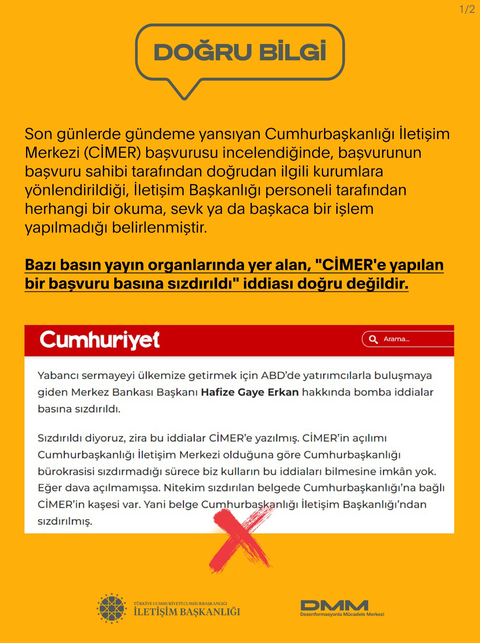 Bazı basın yayın organlarında yer alan, "CİMER'e yapılan bir başvuru basına sızdırıldı" iddiası doğru değildir.