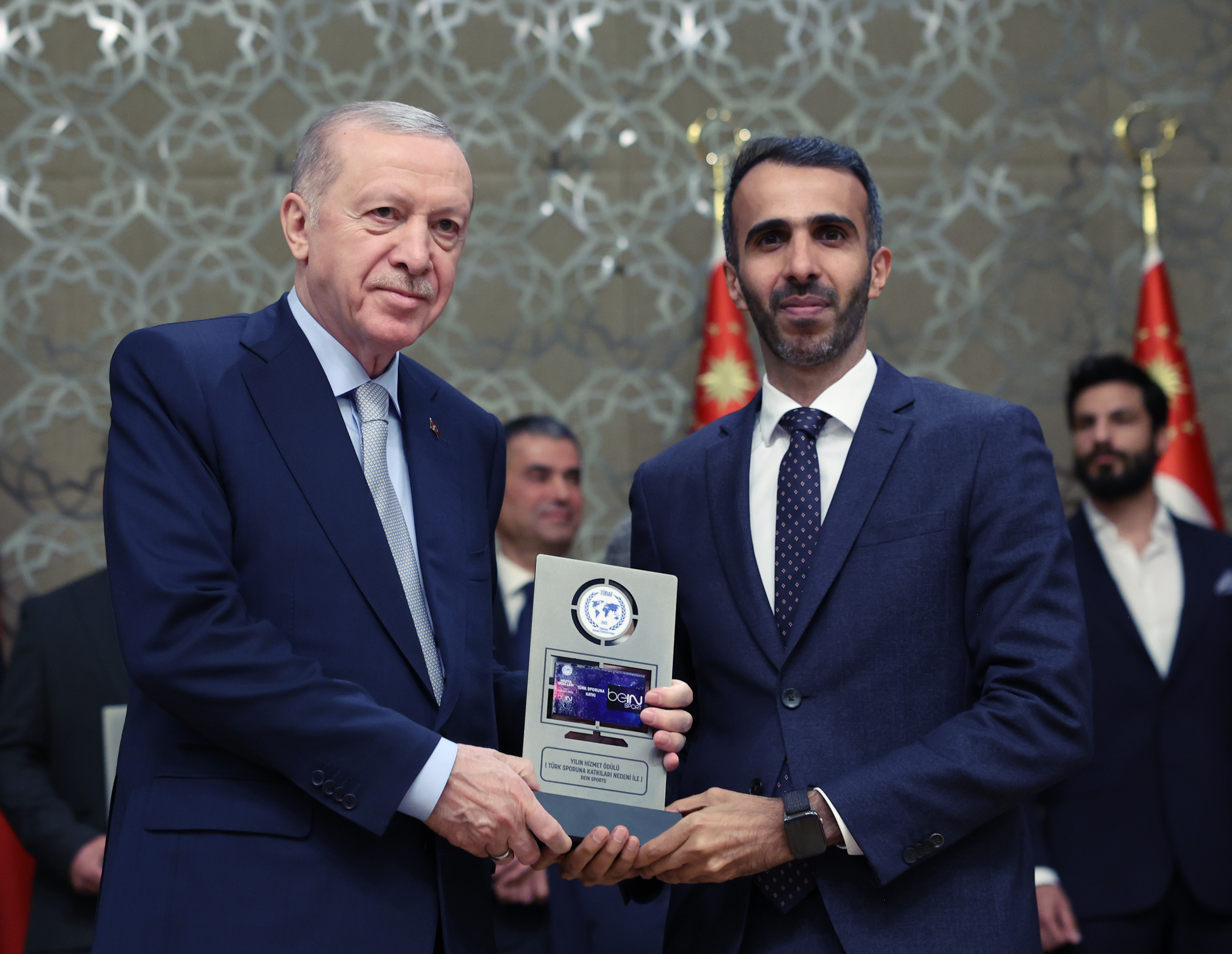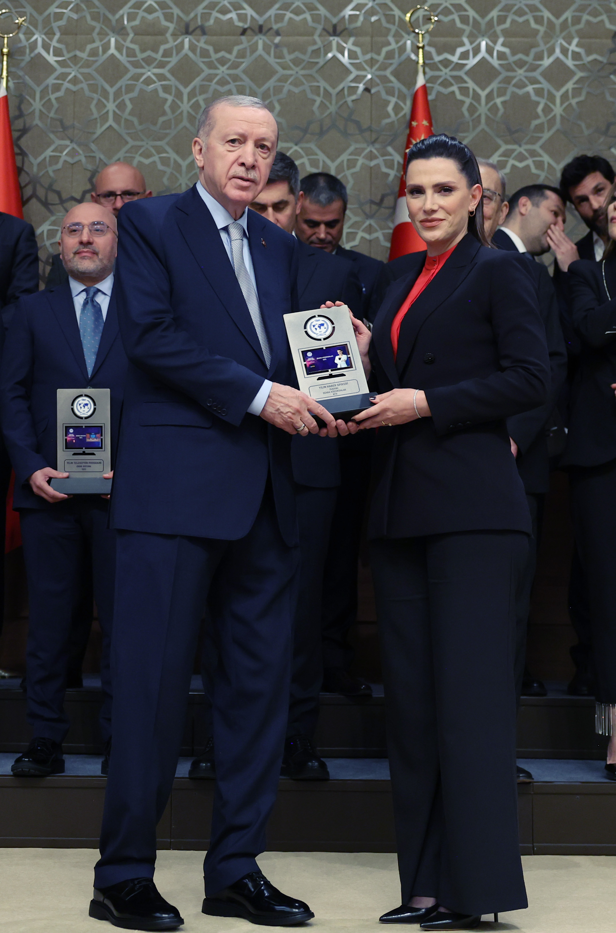 Cumhurbaşkanı Erdoğan, ödül töreninin ardından, ödül alanlarla hatıra fotoğrafı çektirdi.