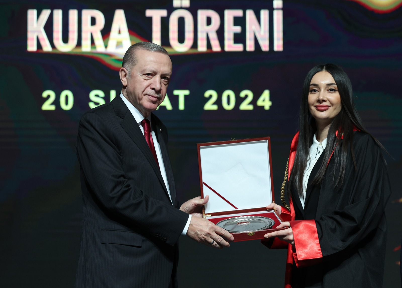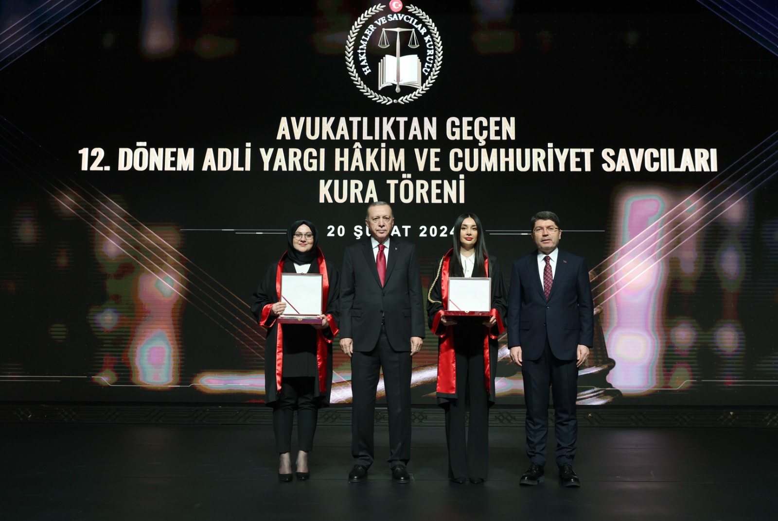Cumhurbaşkanı Erdoğan, konuşmasının ardından avukatlık mesleğinden geçen 12. Dönem Adli Yargı Hâkimi birincisi Büşra Tuna ile 12. Dönem Adli Yargı Cumhuriyet Savcısı birincisi Hümeyra Tekir'e plaketlerini verdi.