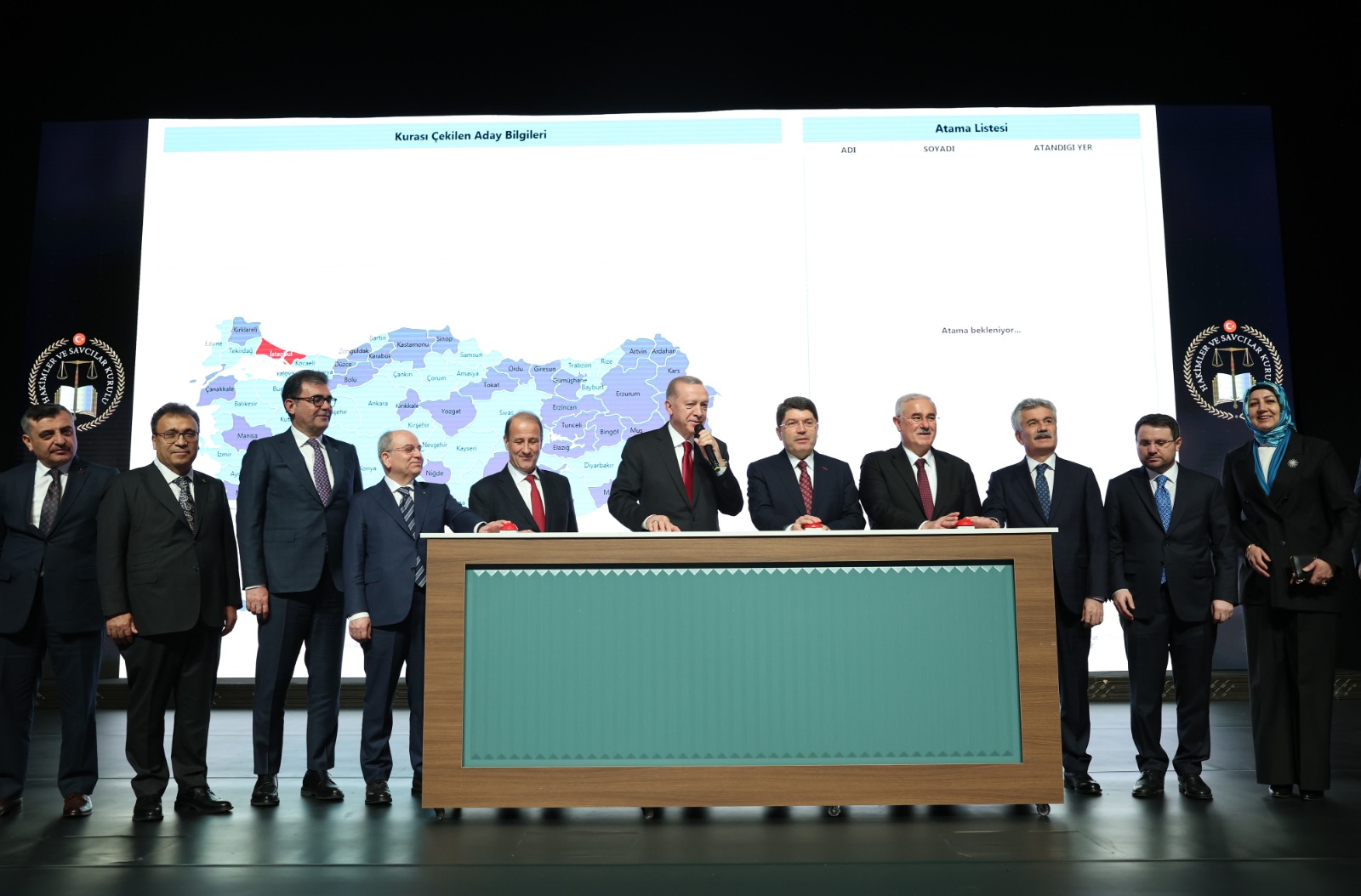 Kura çekimini yaptıkları hâkim ve savcıları tebrik eden Cumhurbaşkanı Erdoğan, kendilerine yeni görevlerinde başarılar diledi.