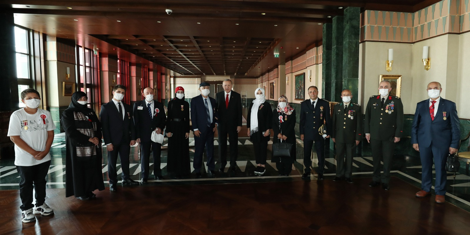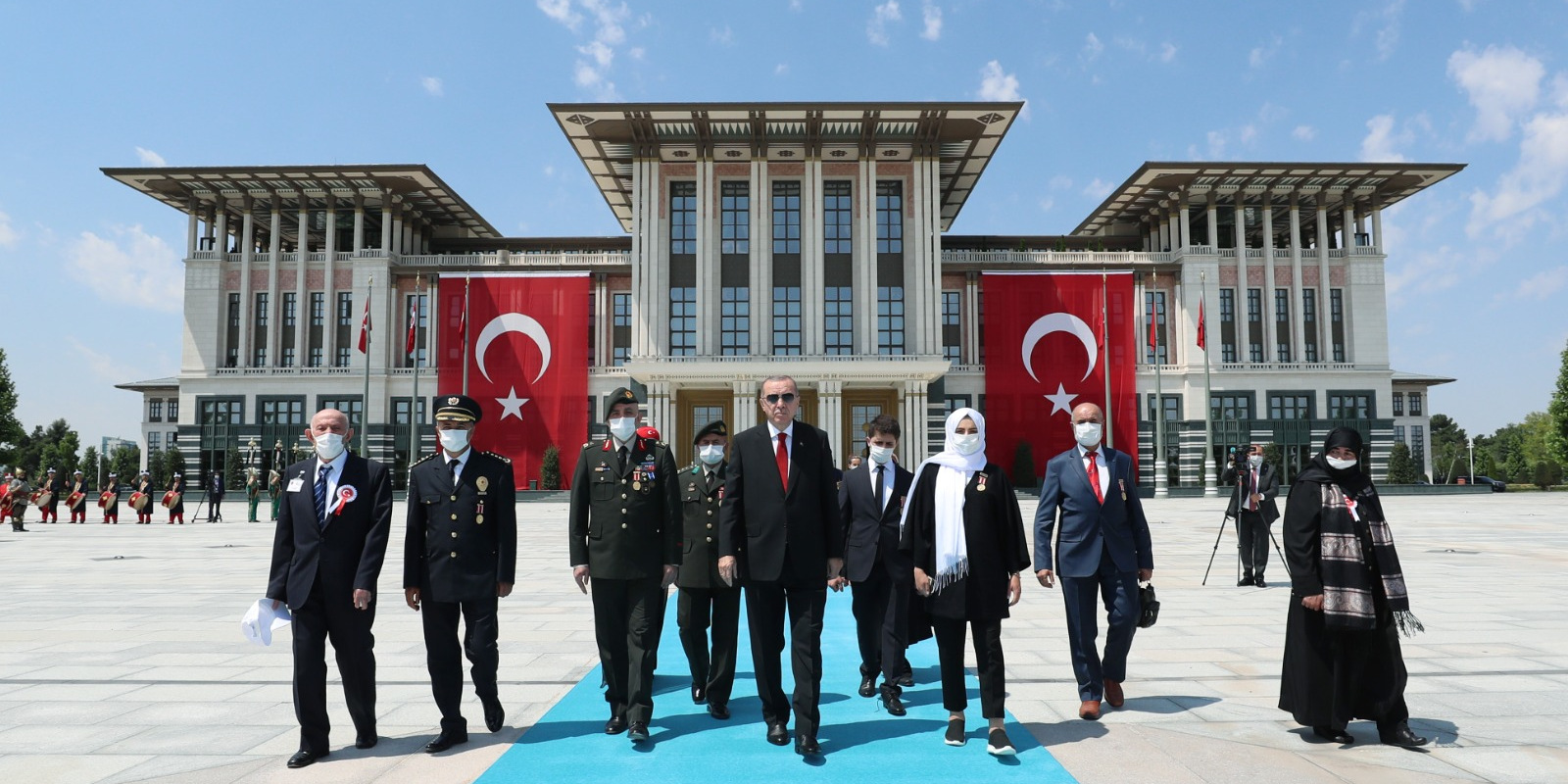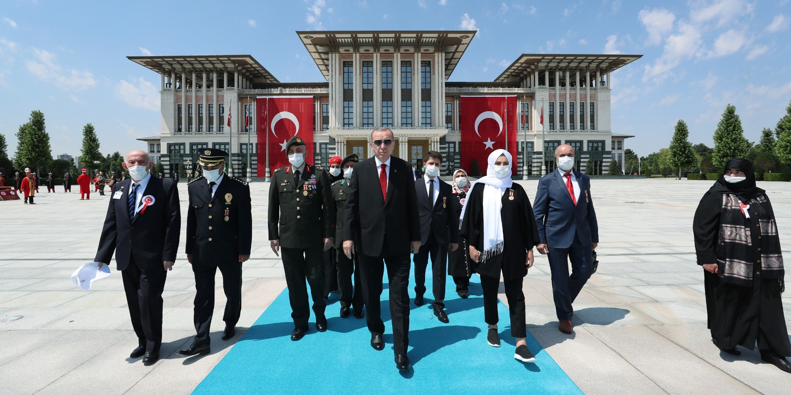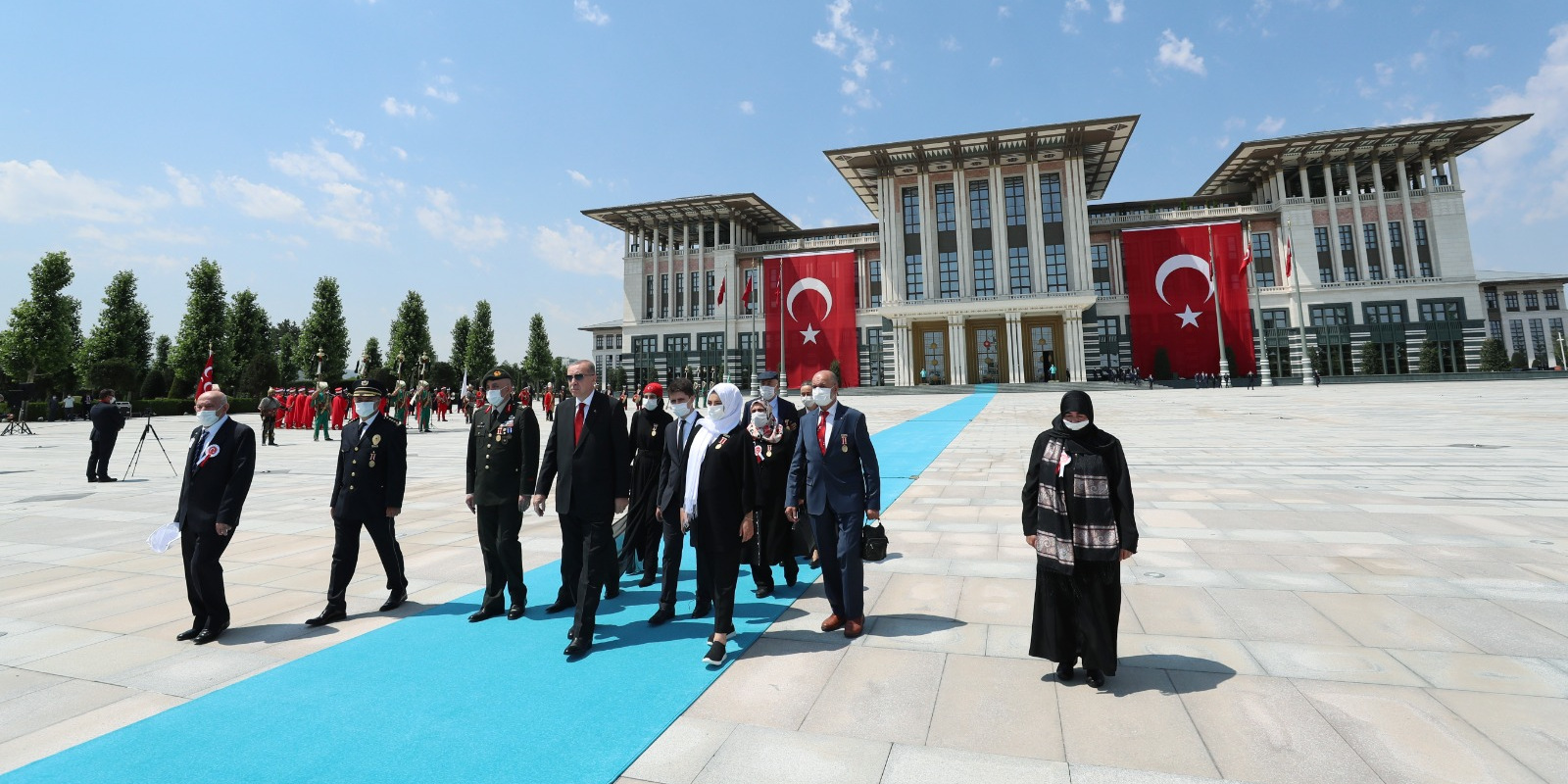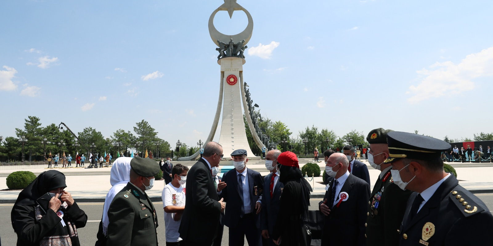 Bazı şehit yakını ve gazilerle birlikte abideye yürüyen Erdoğan'a, kısa süre önce Cumhurbaşkanı Başdanışmanlığı görevine atanan 15 Temmuz gazisi eski Emniyet Genel Müdürlüğü Terörle Mücadele Daire Başkanı Turgut Aslan da eşlik etti.