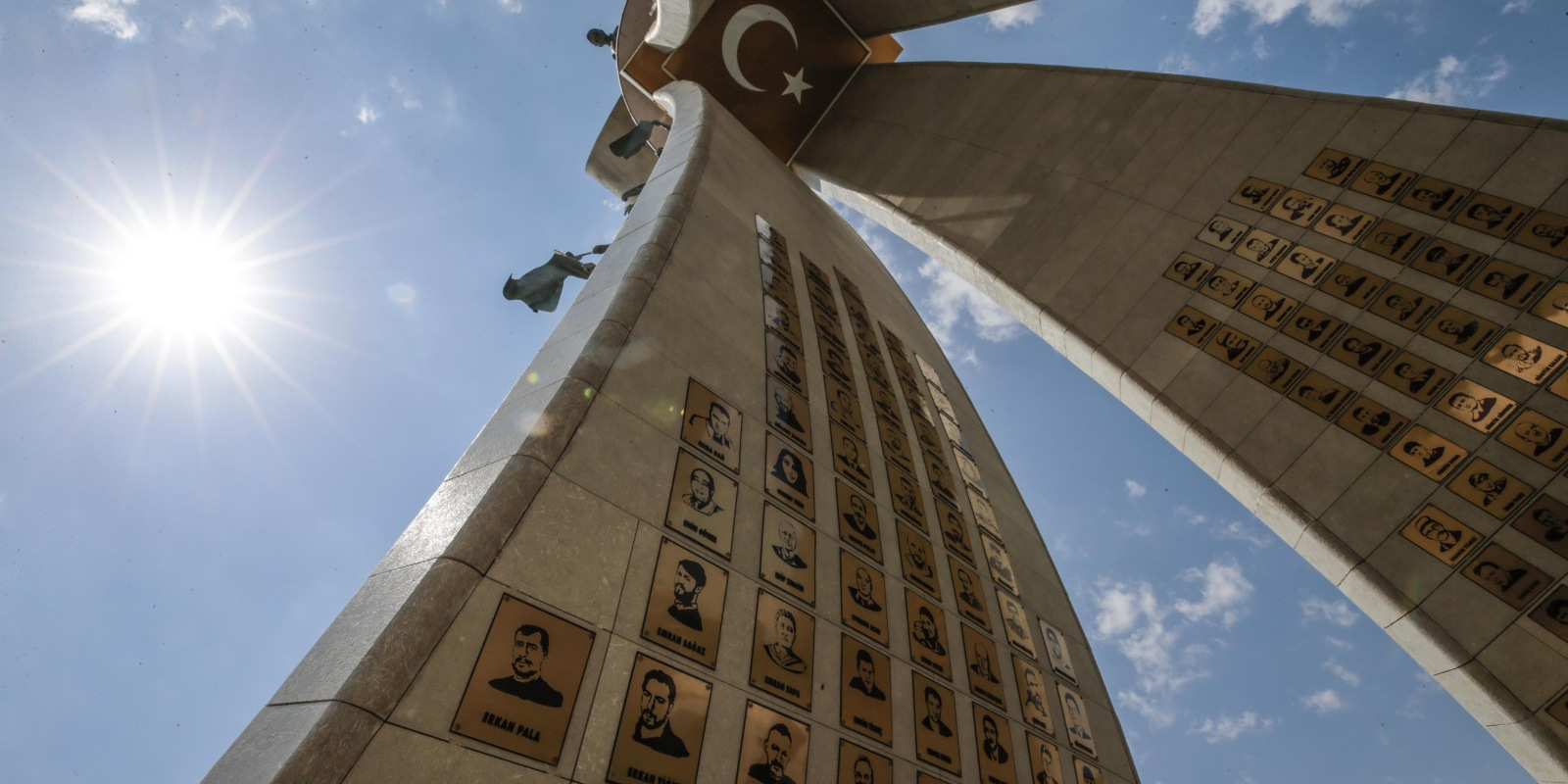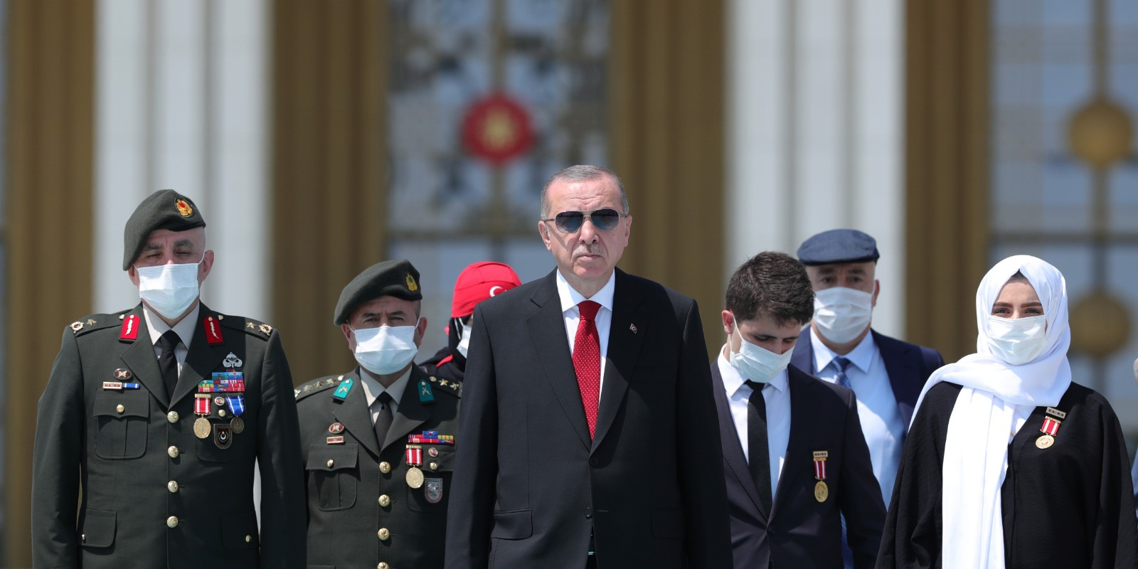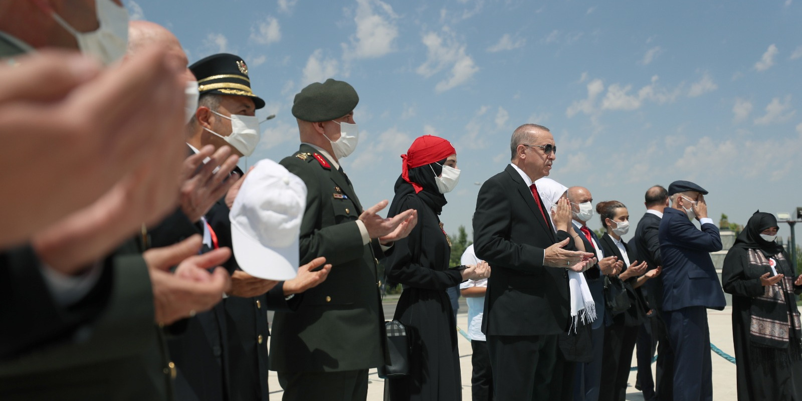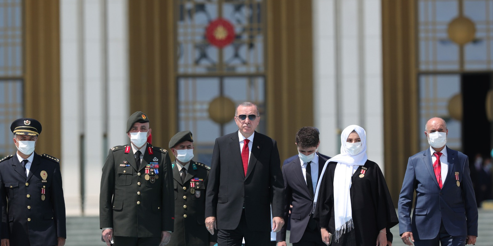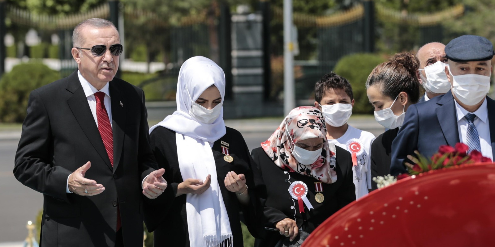 Bazı şehit yakını ve gazilerle birlikte abideye yürüyen Erdoğan'a, kısa süre önce Cumhurbaşkanı Başdanışmanlığı görevine atanan 15 Temmuz gazisi eski Emniyet Genel Müdürlüğü Terörle Mücadele Daire Başkanı Turgut Aslan da eşlik etti.