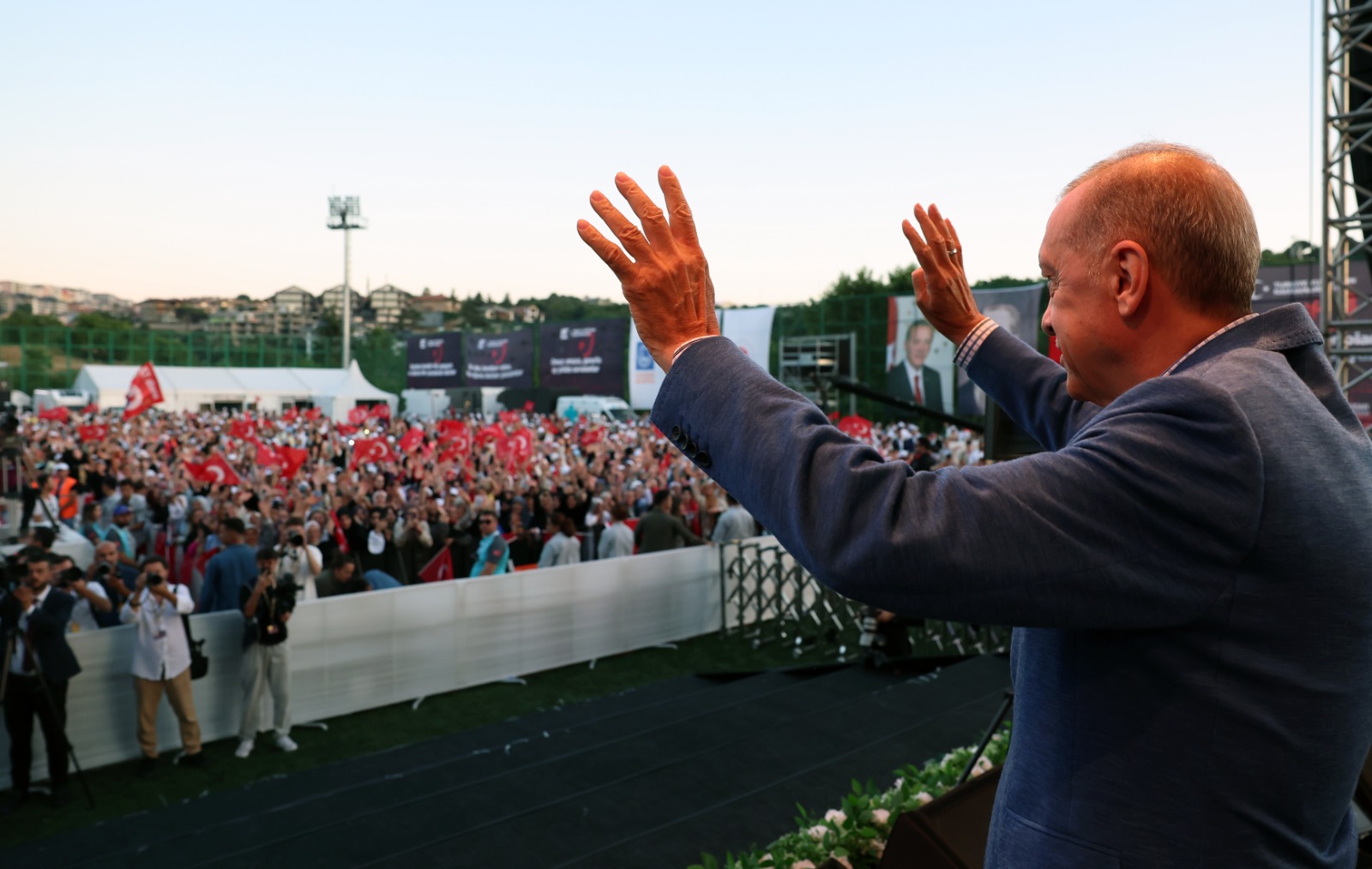 "Buradan hep birlikte Türkiye'ye, televizyon ekranlarından seslenelim." diyen Cumhurbaşkanı Erdoğan, stattaki vatandaşlarla birlikte, "Tek millet, tek bayrak, tek vatan, tek devlet. Bir olacağız, iri olacağız, diri olacağız, kardeş olacağız. Hep birlikte Türkiye olacağız." dizelerini söyleyerek konuşmasını sonlandırdı.