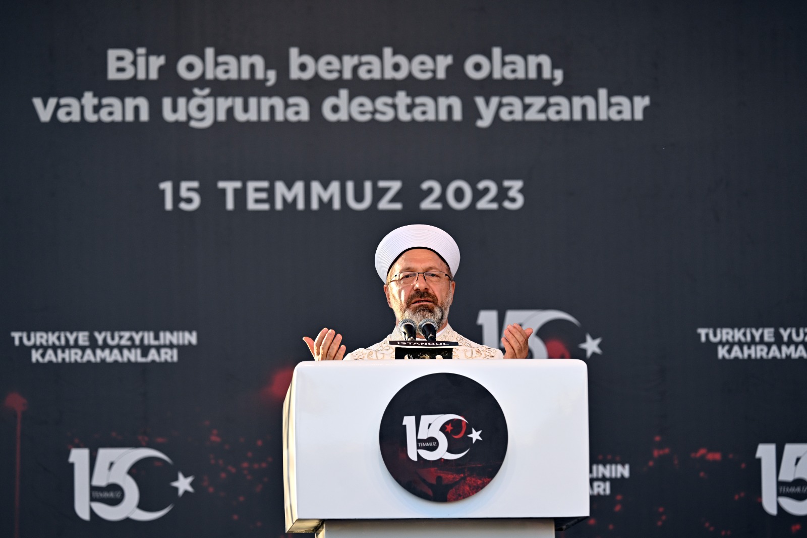 15 Temmuz şehitlerinin isimlerinin okunduğu programda, Kur'an-ı Kerim tilavetinin ardından Diyanet İşleri Başkanı Prof. Dr. Ali Erbaş dua etti.