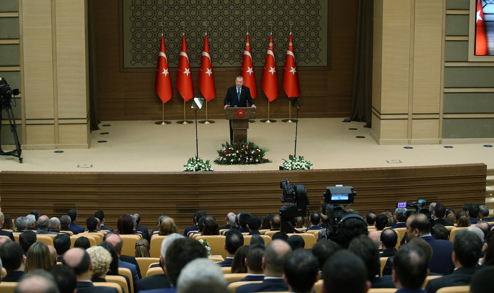 Cumhurbaşkanı Recep Tayyip Erdoğan, Cumhurbaşkanlığı Külliyesi Konferans Salonu'nda düzenlenen 4. Ticaret Müşavirleri Konferansı'nın açılış programında konuştu.