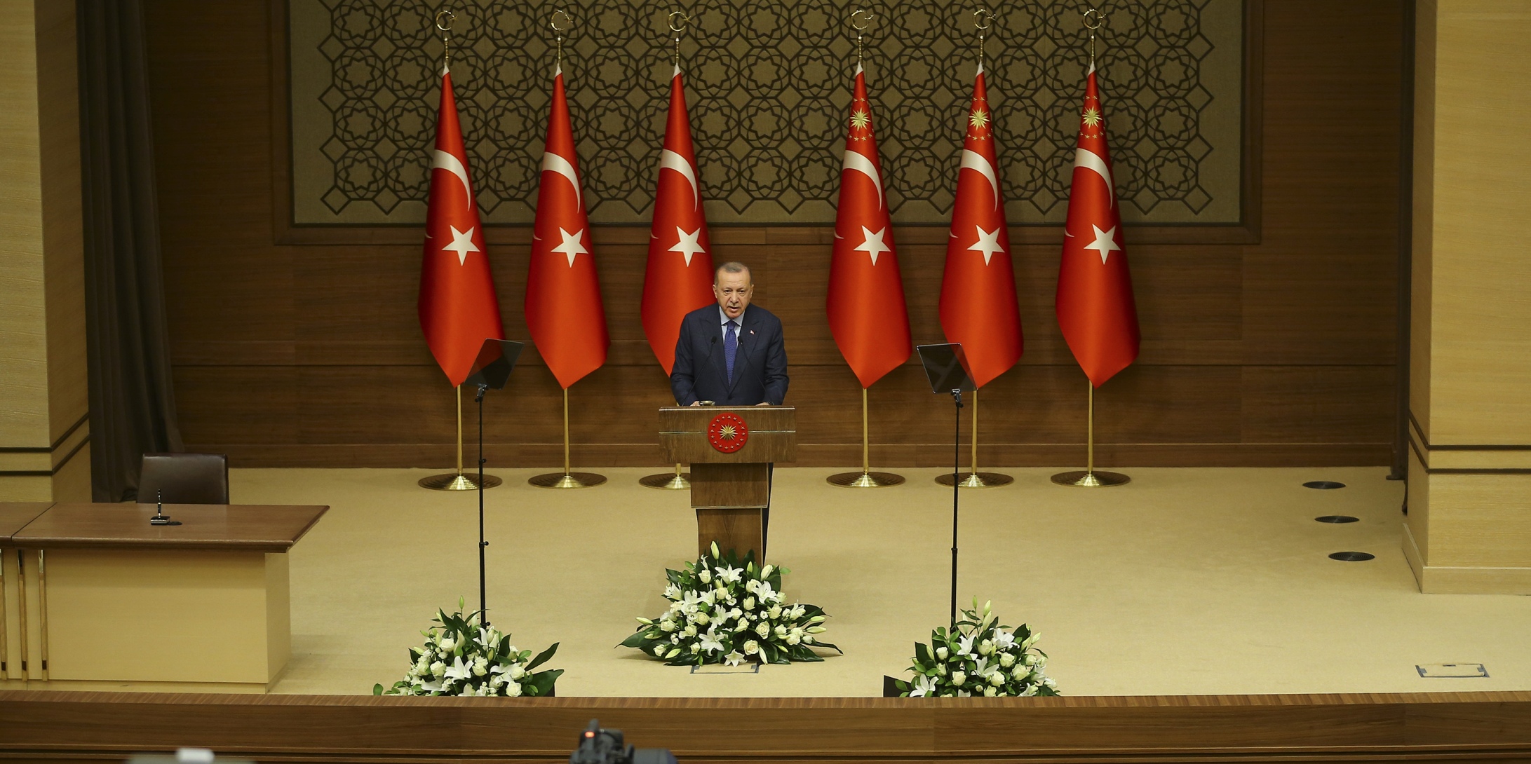 Cumhurbaşkanı Recep Tayyip Erdoğan, Cumhurbaşkanlığı Külliyesi'nde düzenlenen 100 Bin Sosyal Konut Tanıtım Toplantısı'nda konuştu.