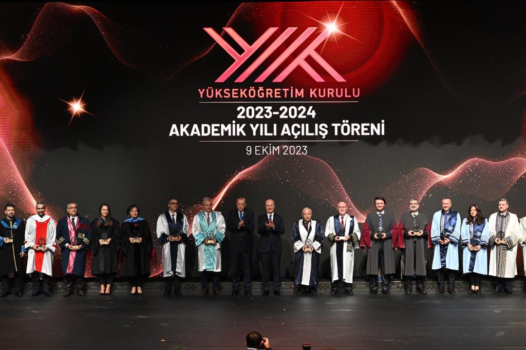 Daha sonra Cumhurbaşkanı Erdoğan, "YÖK 2023 Üstün Başarı Ödüllerini" kazanan akademisyenlere ve üniversitelere ödüllerini verdi.