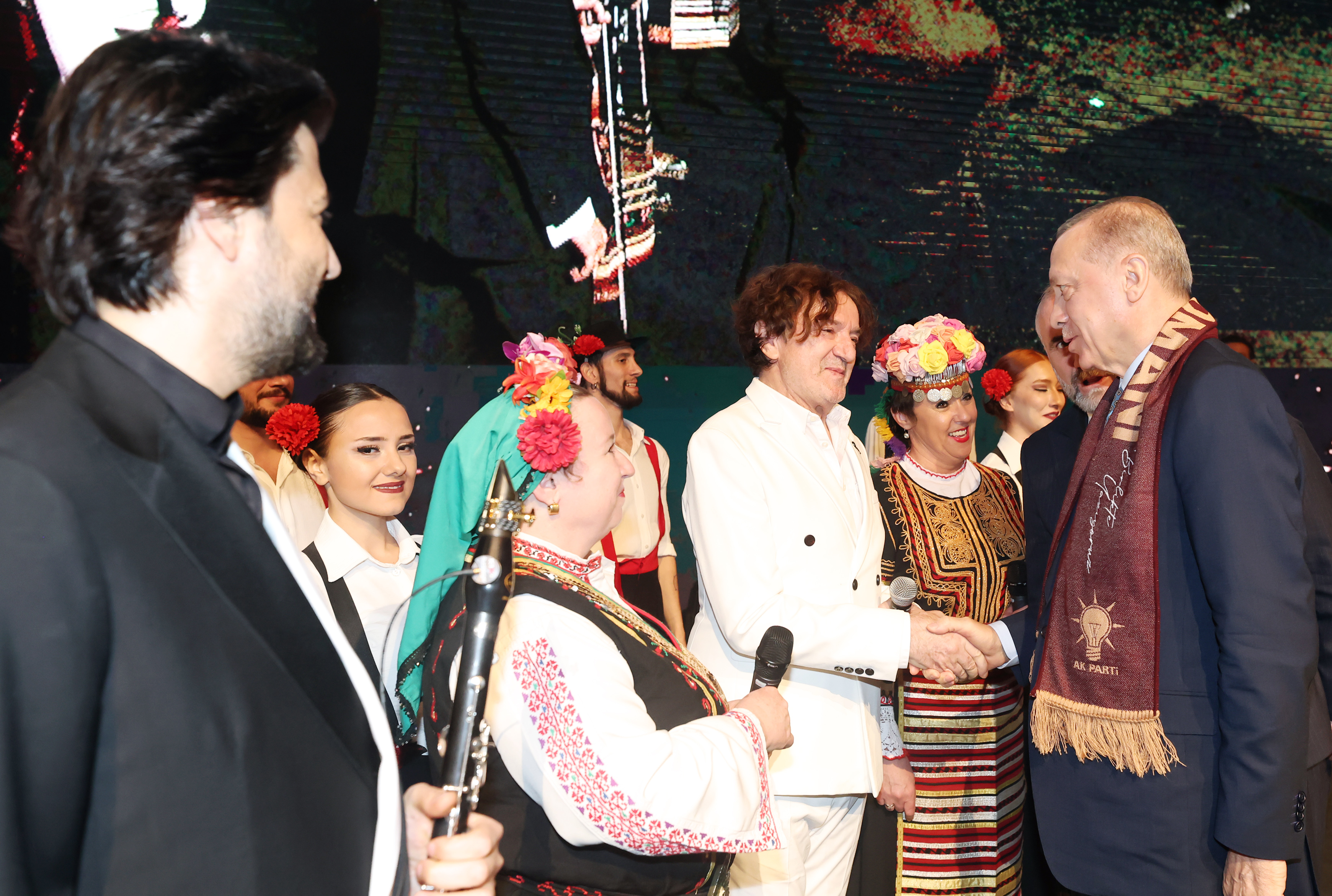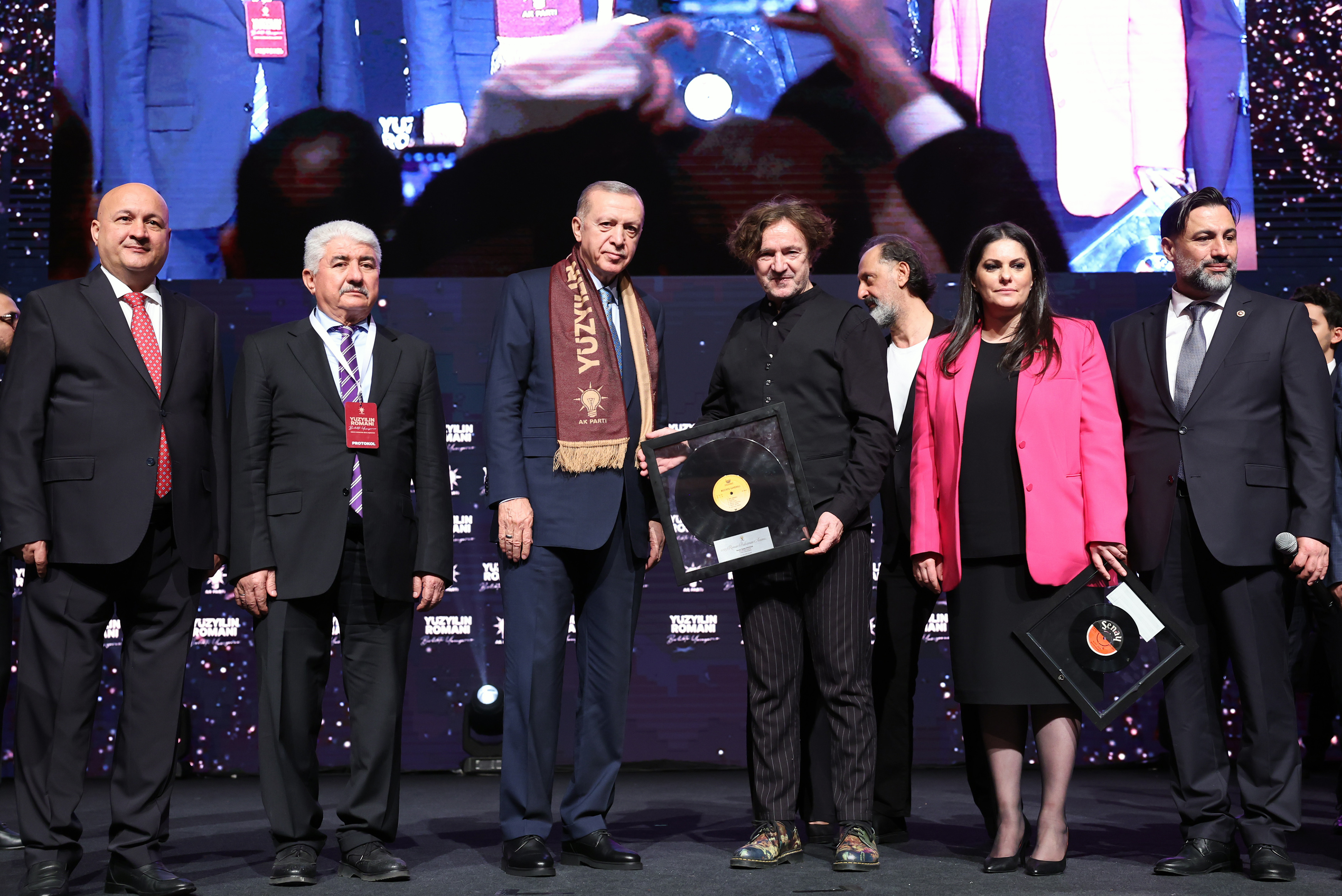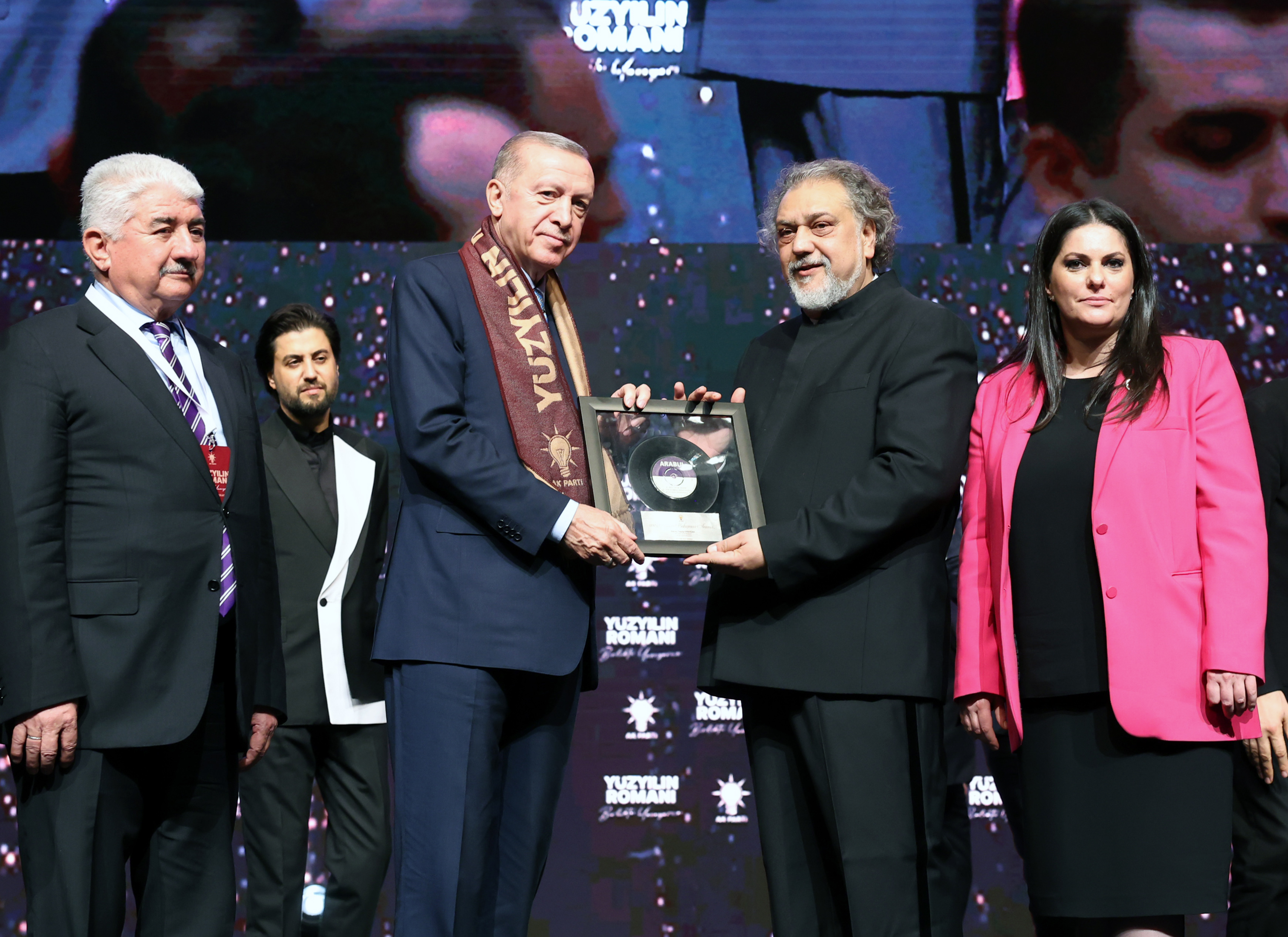 Cumhurbaşkanı Erdoğan da sanatçılar Yücel Arzen, Goran Bregovic, Orhan Şallıel ve Muhammed Yıldırır'a, Mustafa Kandıralı'nın taş plaklarını hediye etti.
