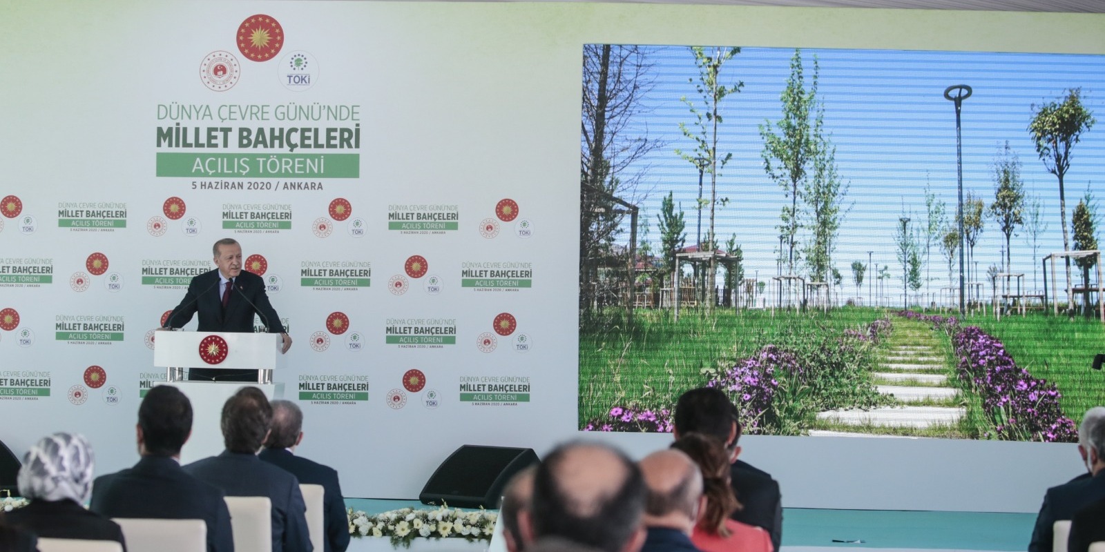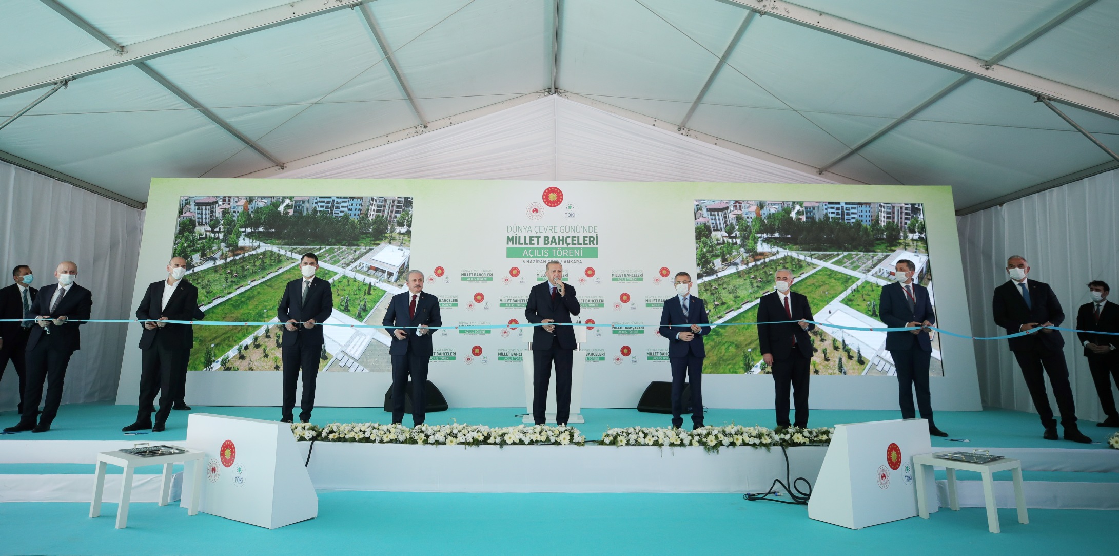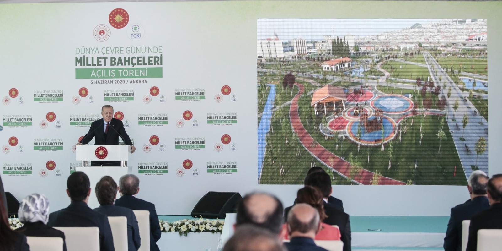 Açılışı yapılan millet bahçelerinin hayırlı olmasını dileyen Cumhurbaşkanı Erdoğan, söz konusu bahçeler 5 Haziran Dünya Çevre Günü'nde vatandaşların hizmetine sunulduğu için de ayrıca memnun olduğunu belirtti.