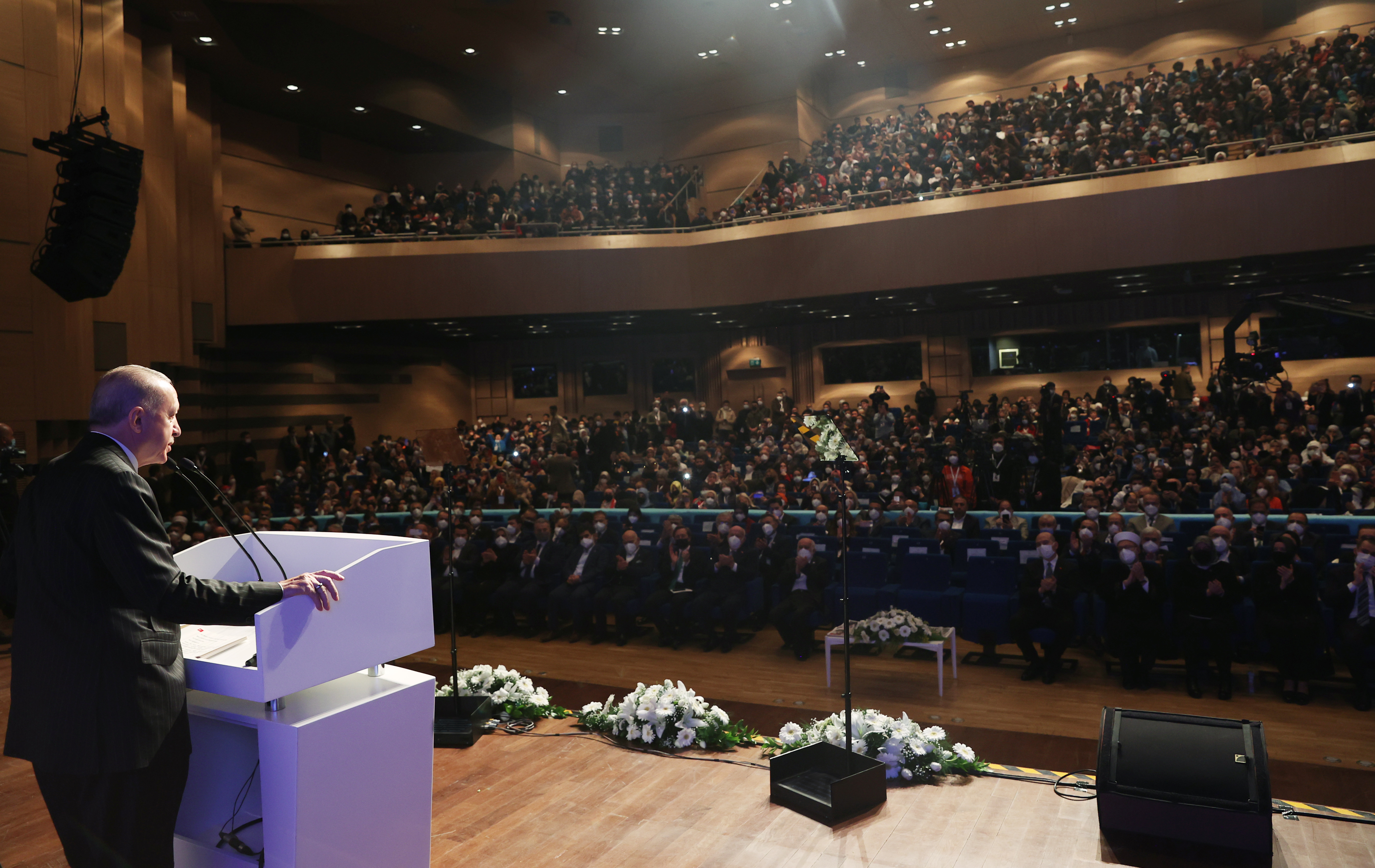 Cumhurbaşkanı Erdoğan, programdaki katılımcılara hitaben, "Kıymetli kardeşlerim, ben sizleri Allah için seviyorum. Rabb'im bizleri burada olduğu gibi inşallah sevgili Habib'inin sancağı altında da haşrucem eylesin." dedi.