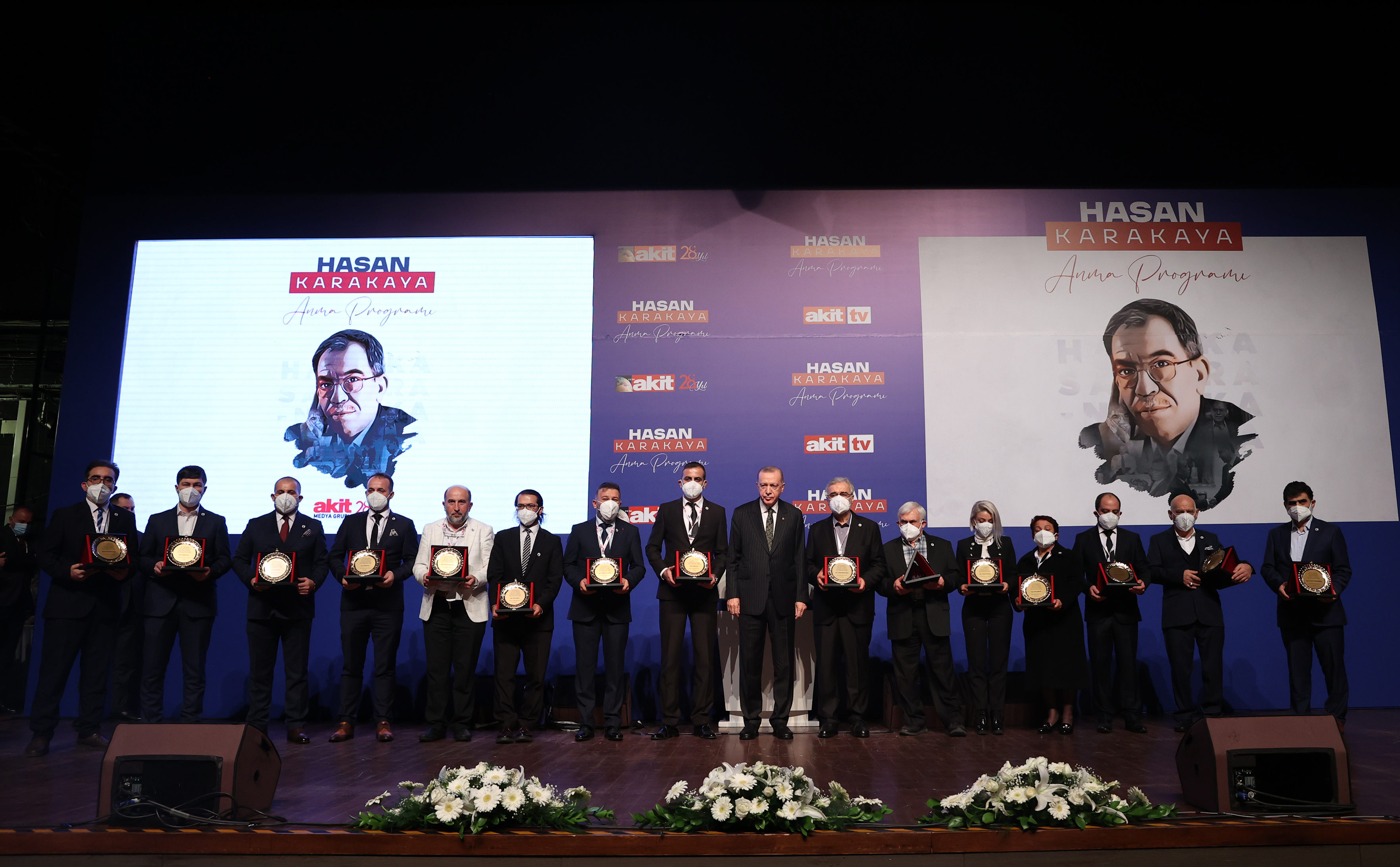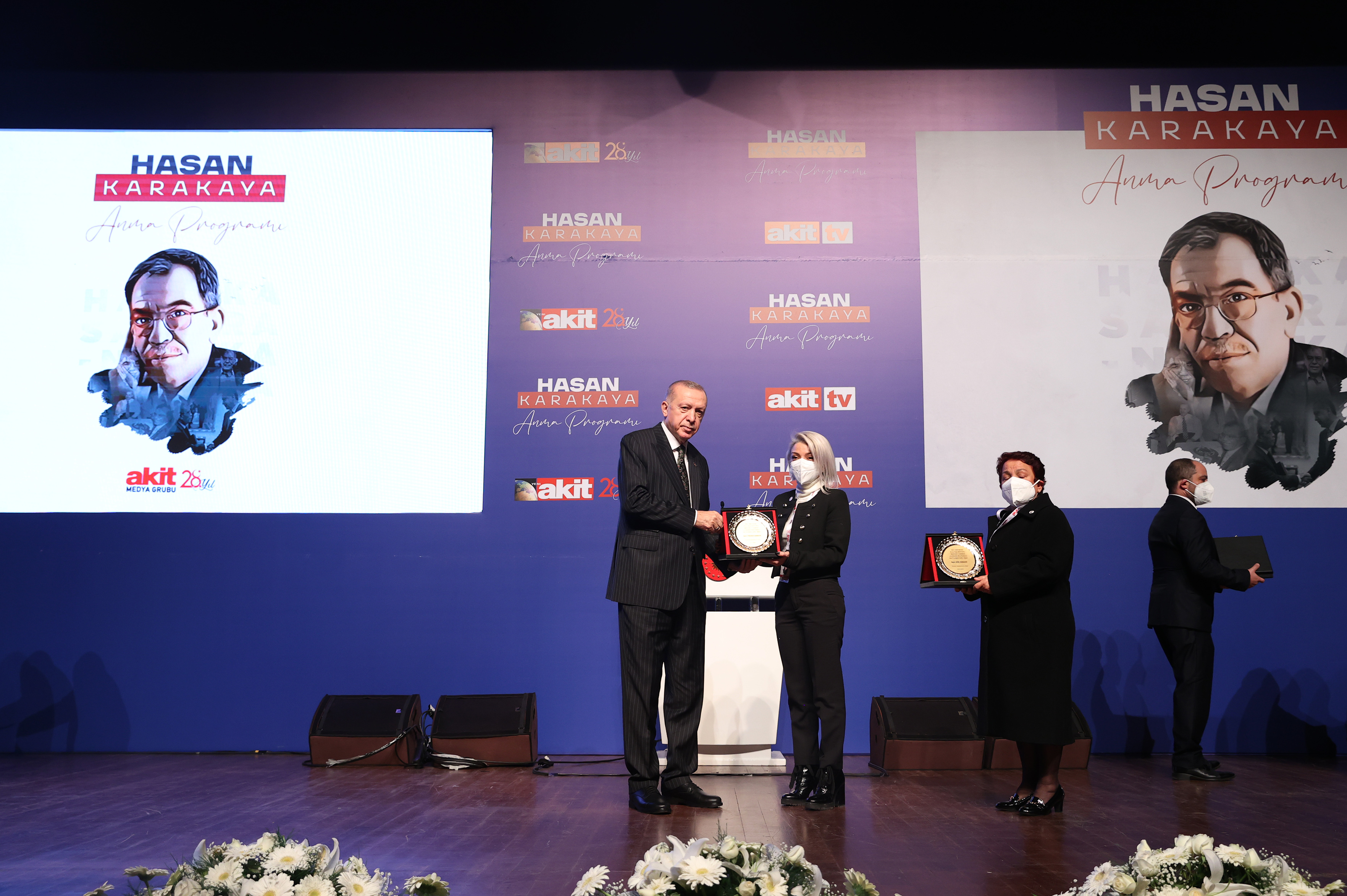 Cumhurbaşkanı Erdoğan, konuşmasının ardından, Yeni Akit Gazetesi yöneticilerine, Karakaya’nın çalışma arkadaşlarına ve ailesine plaket verdi.