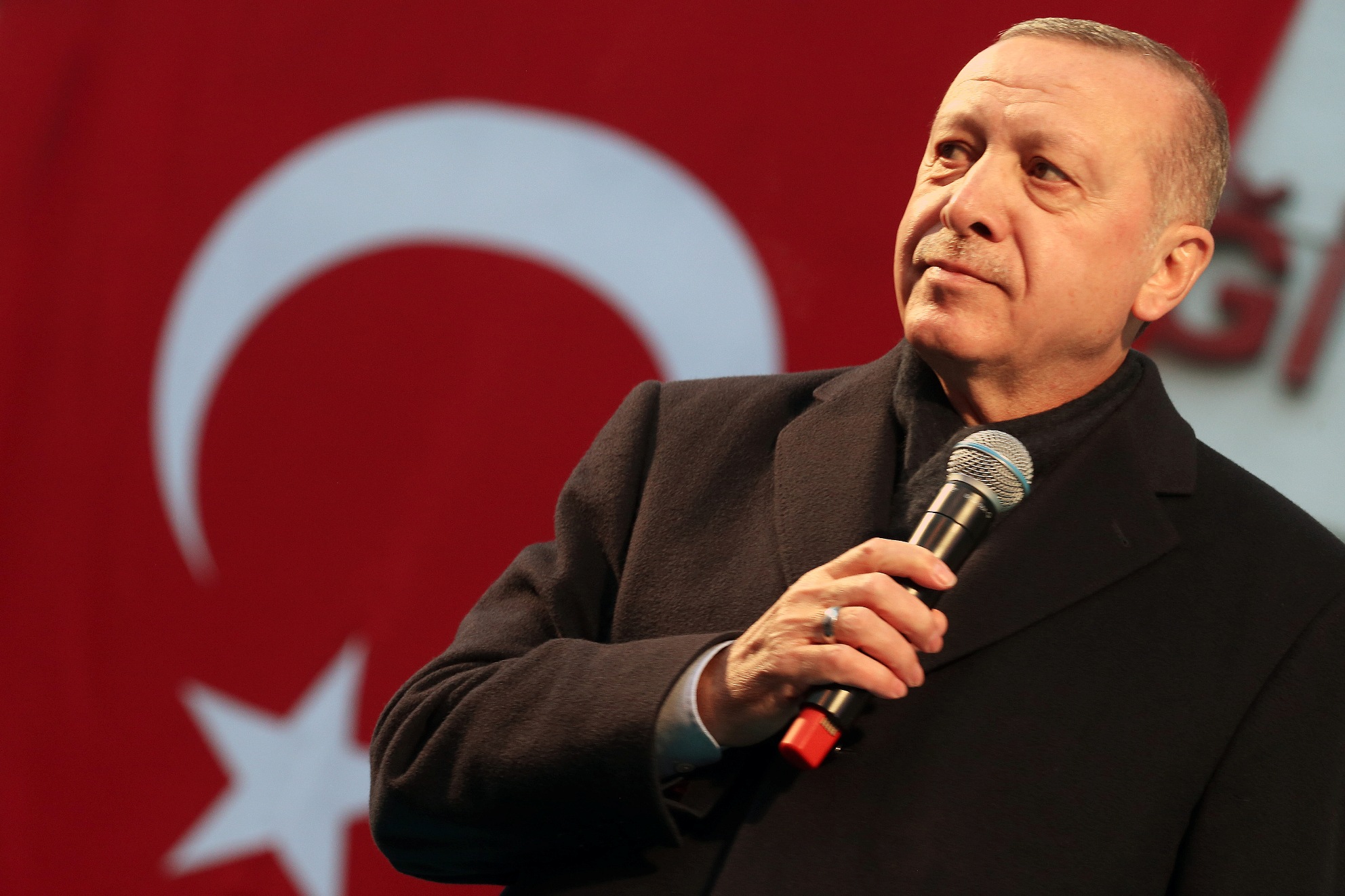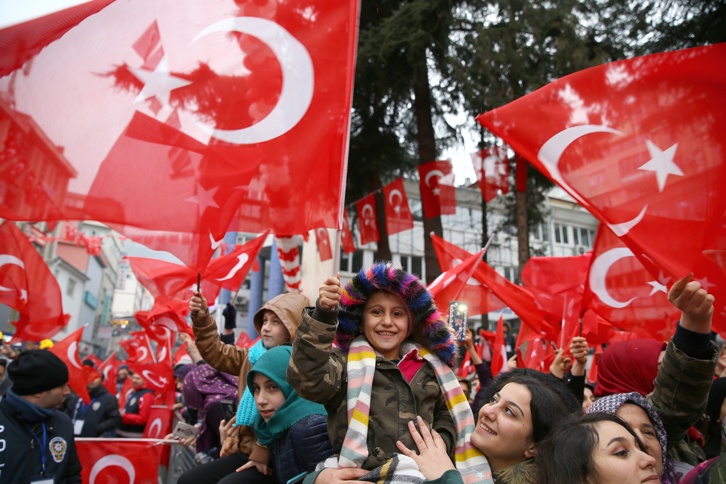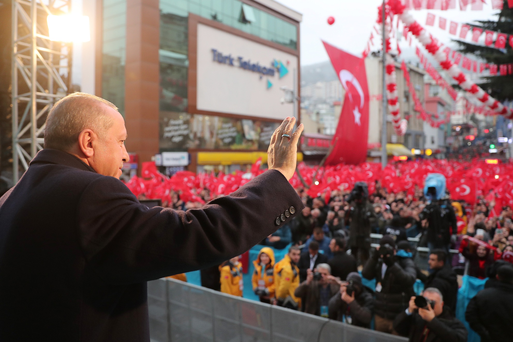 Erdoğan, Rabia işareti yaparak alandaki vatandaşlarla "Tek millet, tek bayrak, tek vatan, tek devlet. Bir olacağız, iri olacağız, diri olacağız, kardeş olacağız. Hep birlikte Türkiye olacağız. 31 Mart Artvin'imiz için, ülkemiz için hayırlara vesile olsun inşallah." ifadelerini kullandı.