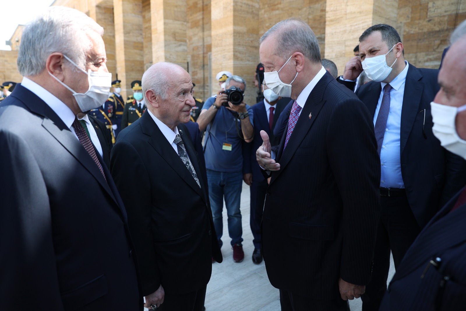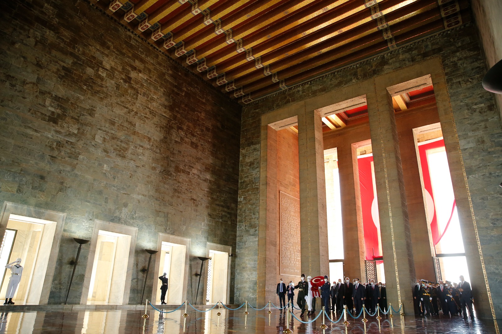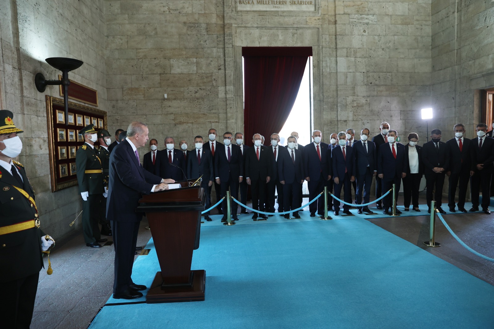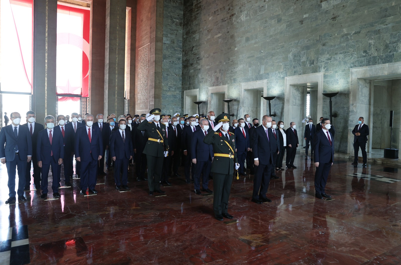 Cumhurbaşkanı Erdoğan başkanlığındaki kortejde, TBMM Başkanı Mustafa Şentop, Cumhurbaşkanı Yardımcısı Fuat Oktay, CHP Genel Başkanı Kemal Kılıçdaroğlu, Cumhurbaşkanlığı Kabinesi üyeleri, MHP Genel Başkanı Devlet Bahçeli, İYİ Parti Genel Başkanı Meral Akşener, yüksek yargı organlarının başkanları, komutanlar, siyasi partilerin temsilcileri, bürokratlar ve diğer devlet erkanı yer aldı.